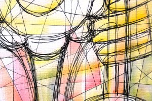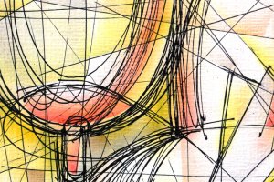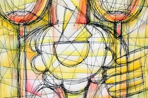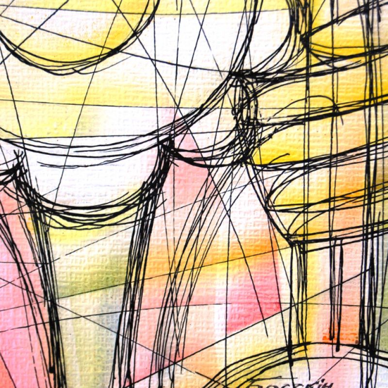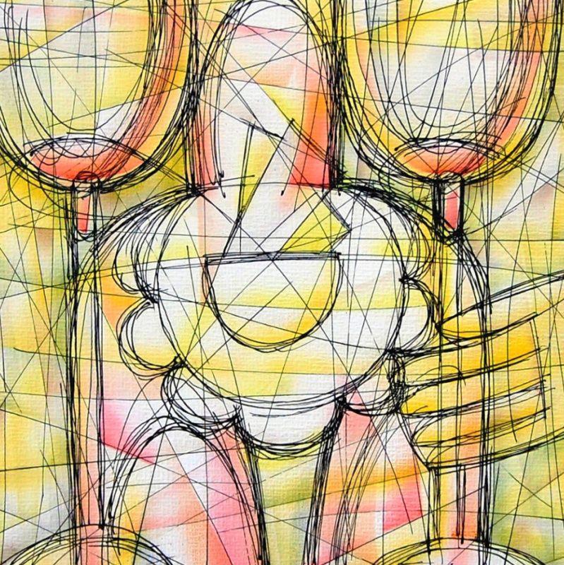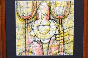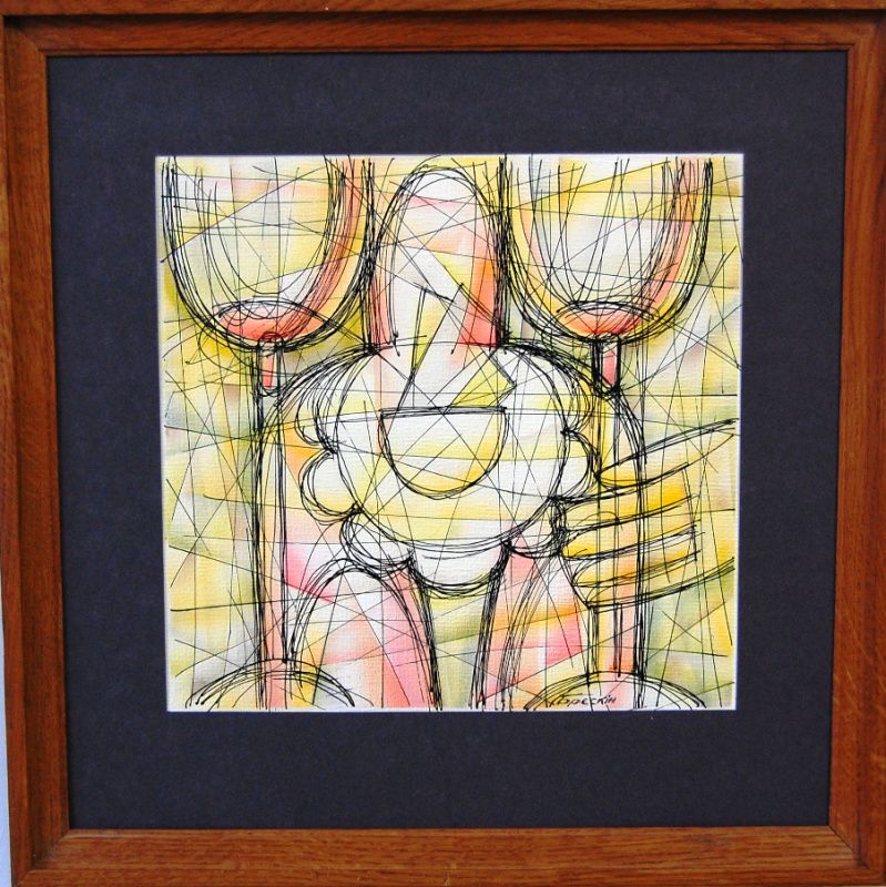 Мелованая бумага "Мешок" тушь, перо, аэрограф. Авторская техника. 26х27 см. с паспарту в раме из натурального дуба 43х43 см. закрыта стеклом.