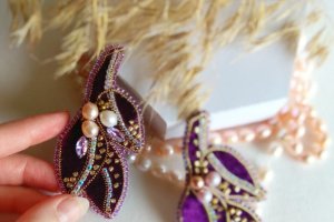 Материалы: бархат, натуральный речной жемчуг, кристаллы, бисер, стразовая цепь, изнанка из эко-кожи.