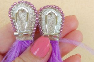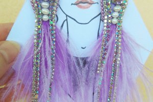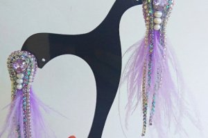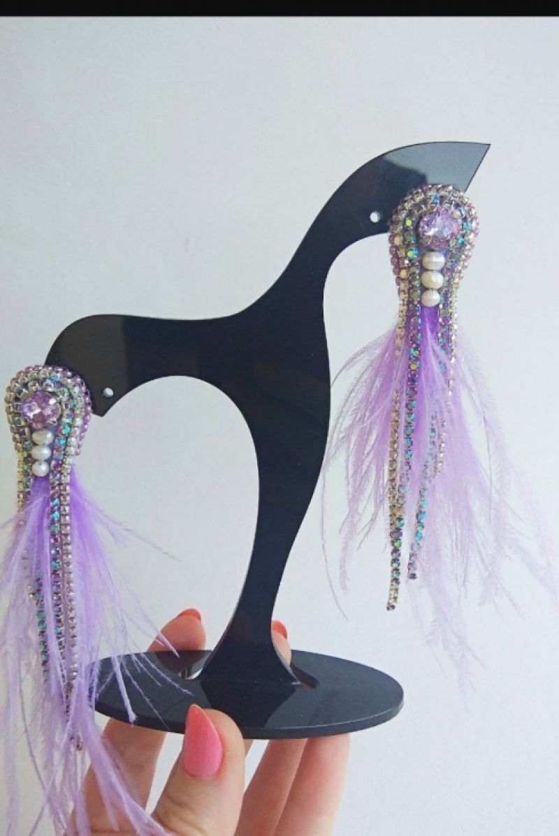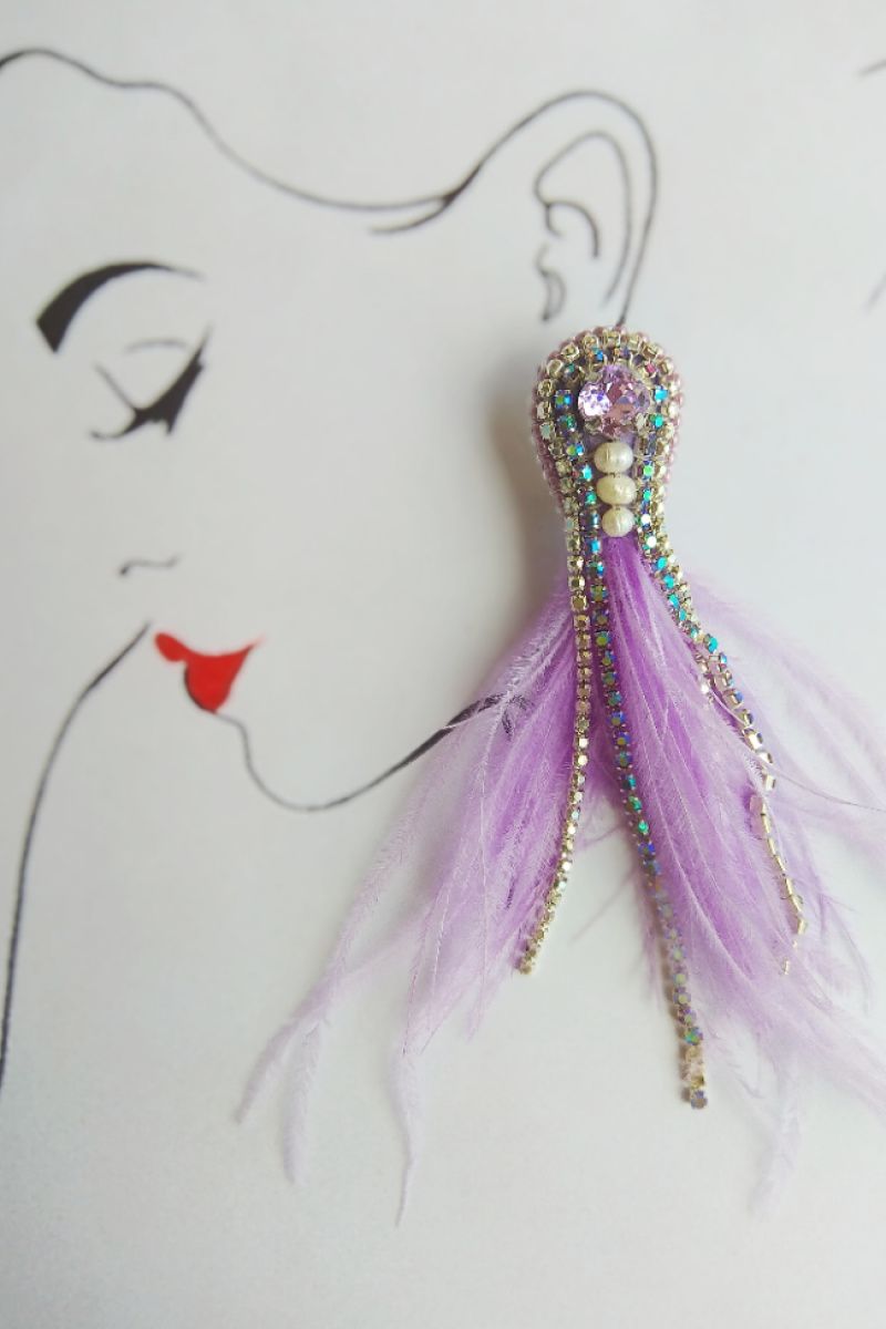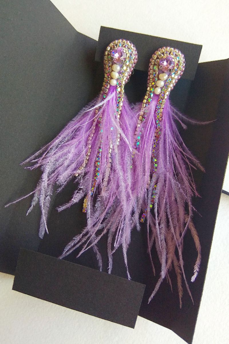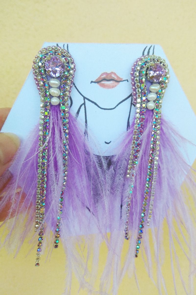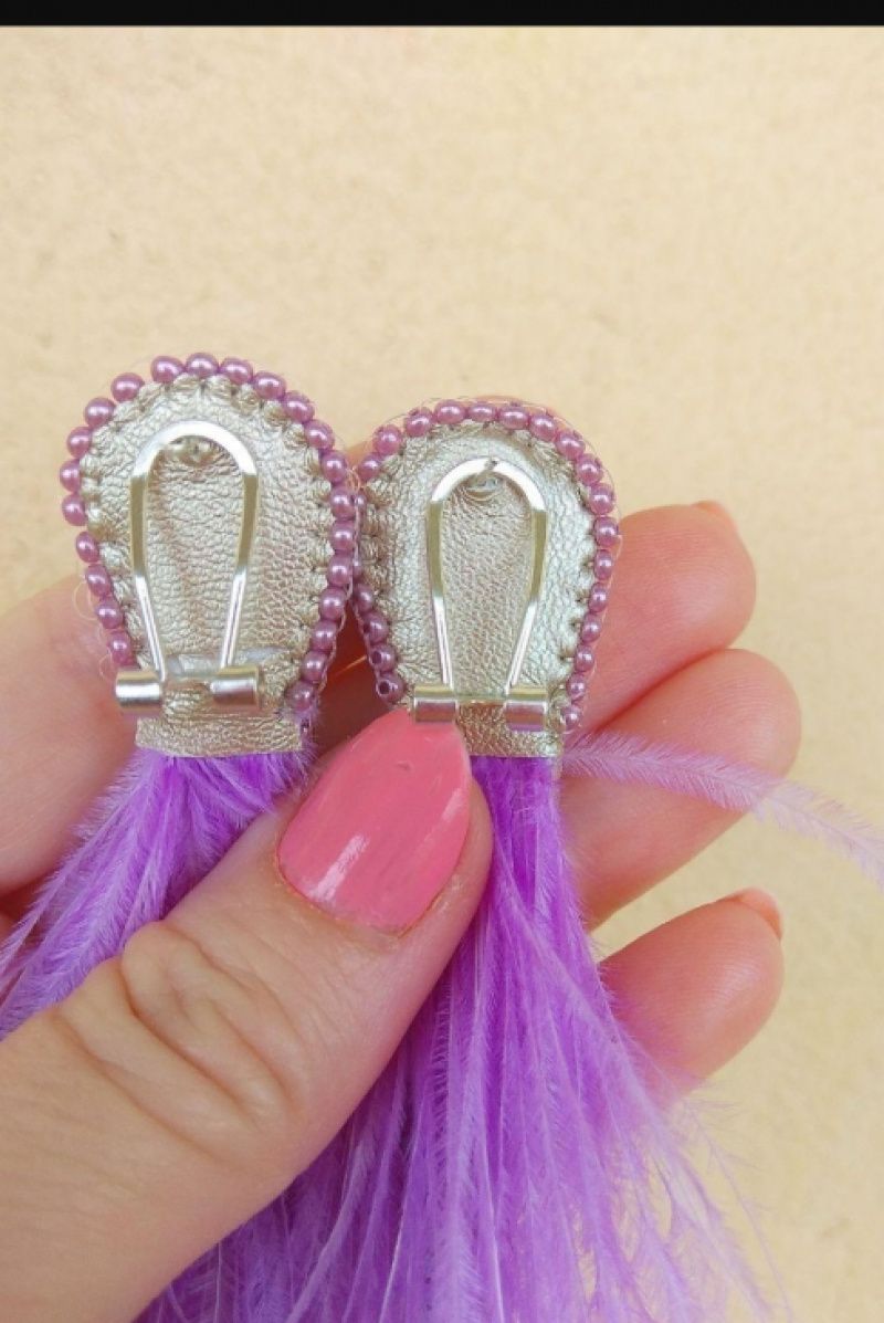 Яркие лавандовые серьги-клипсы с перьями-тренд 2021 года!