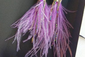 -перья страуса, кристаллов, стразовой цепи, натуральный речной жемчуг, изнанка из эко-кожи