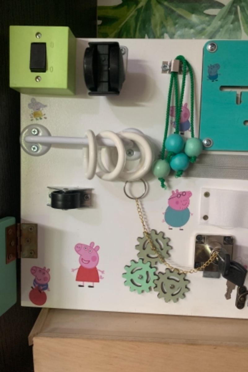Бизиборд это развивающая игрушка сделана по методикам Монтессори Множество разнообразных деталей научат детей «взрослых вещей» Для основы использована фанера высшего сорта толщиной 10 мм и акриловые краски на водной основе