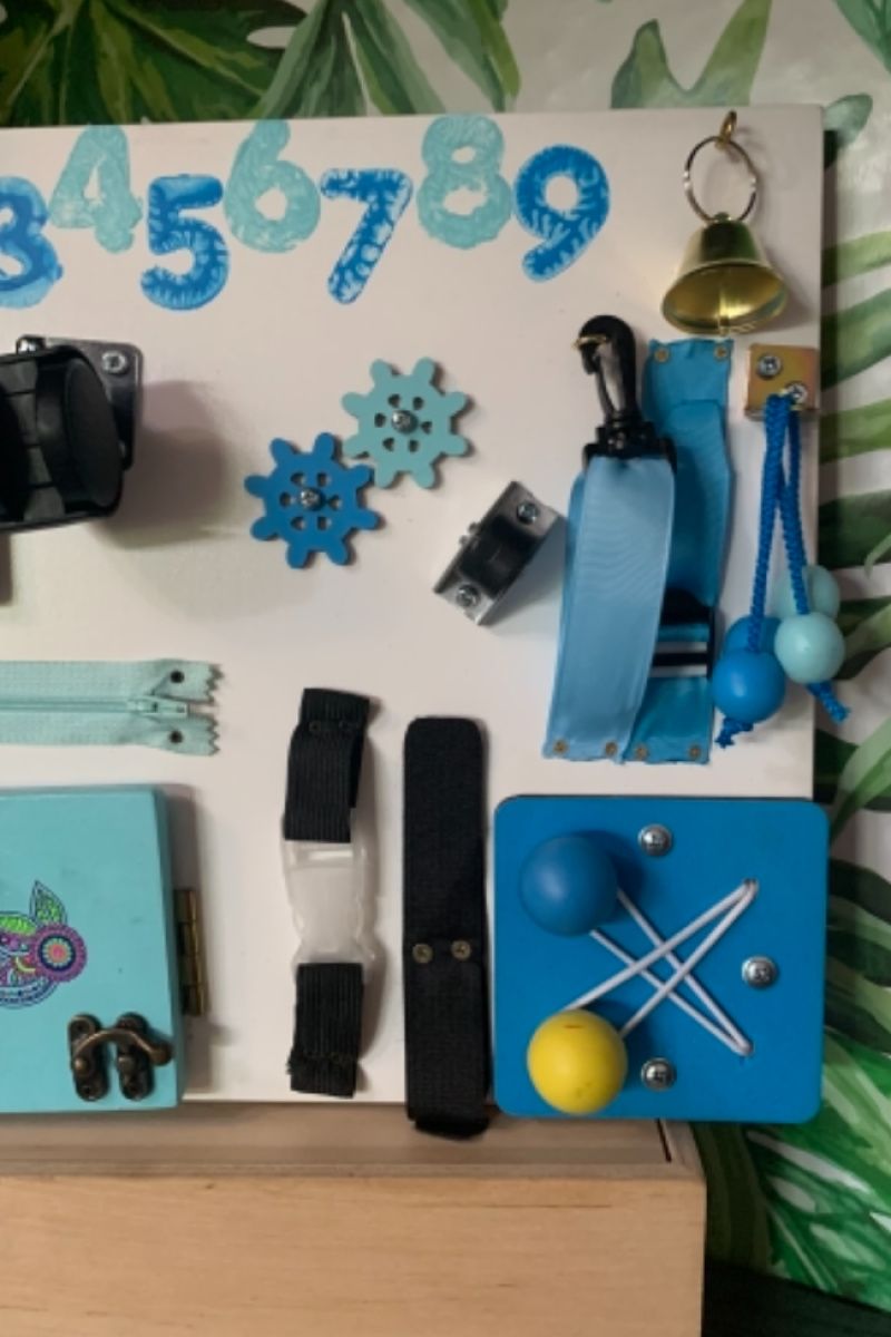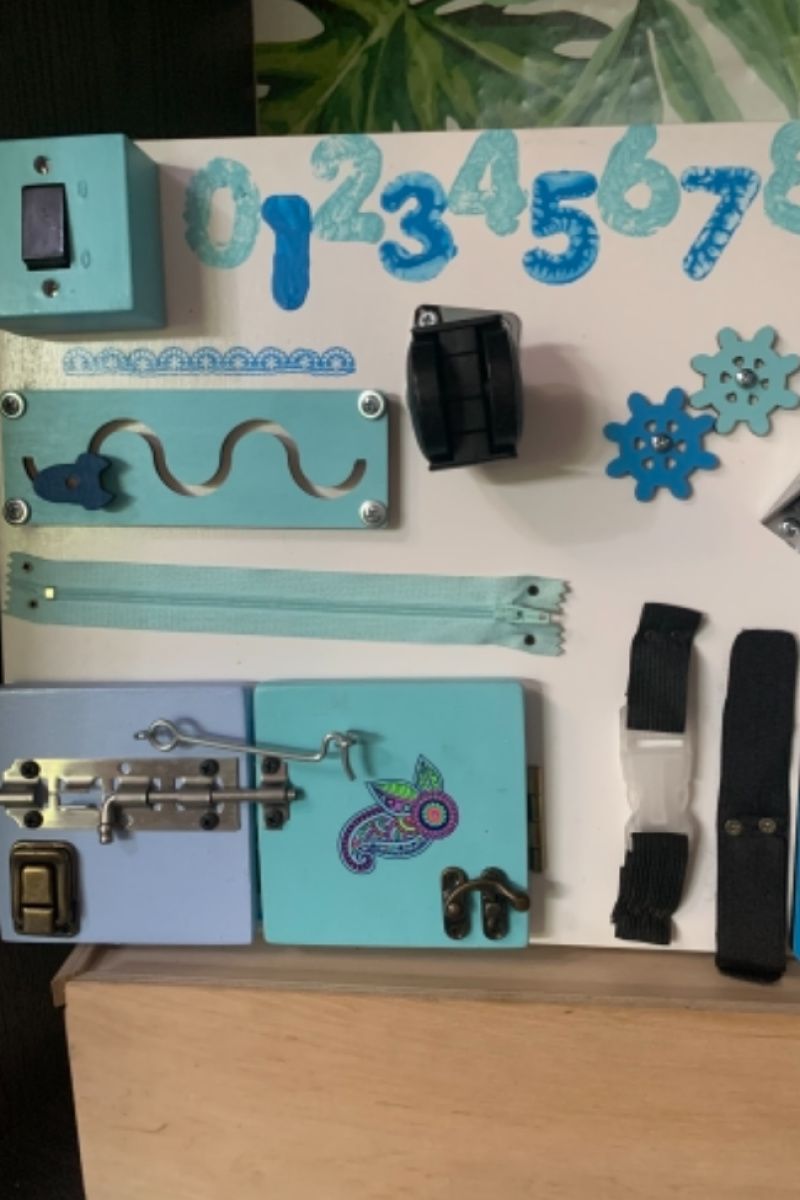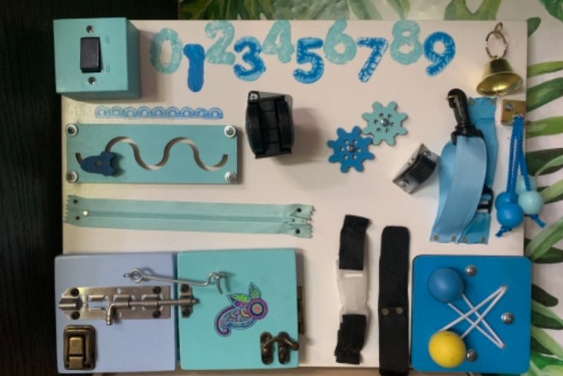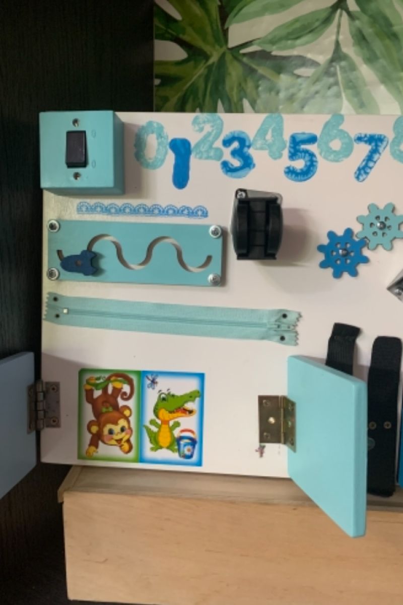 Бизиборд это развивающая игрушка сделана по методикам Монтессори Множество разнообразных деталей научат детей «взрослых вещей» Для основы использована фанера высшего сорта толщиной 10 мм и акриловые краски на водной основе