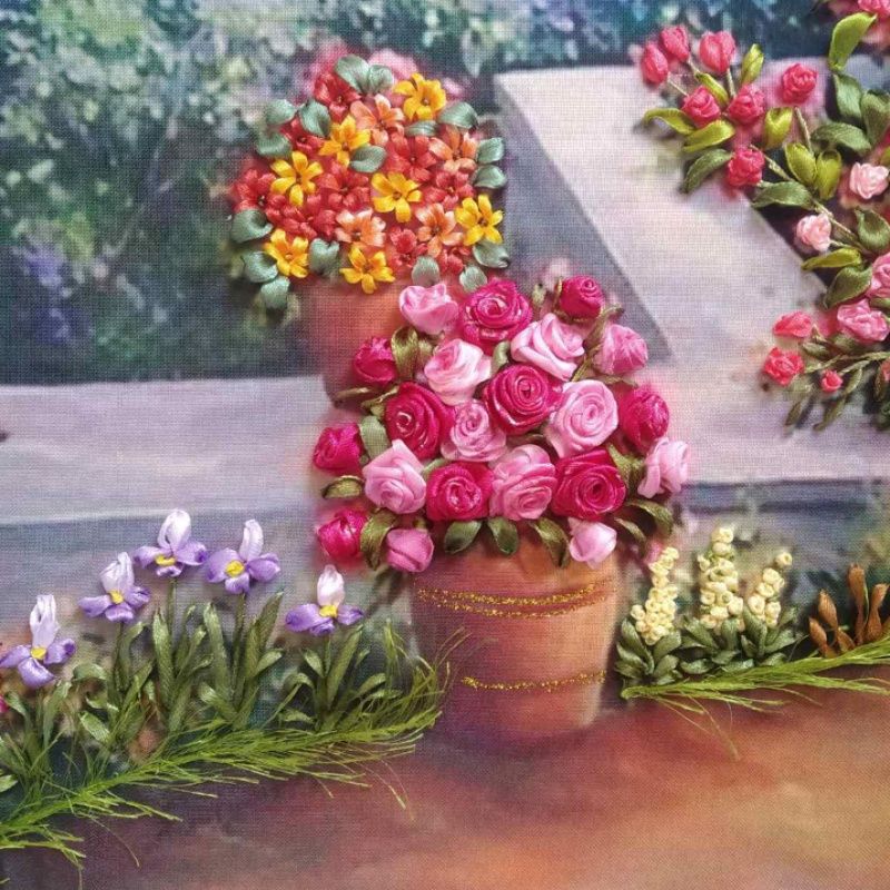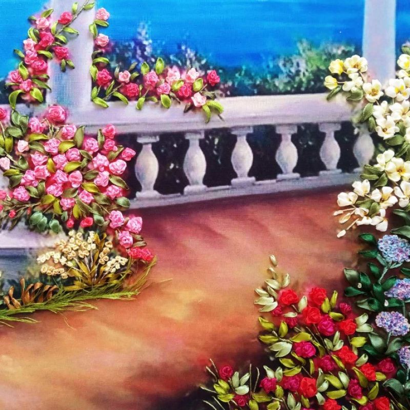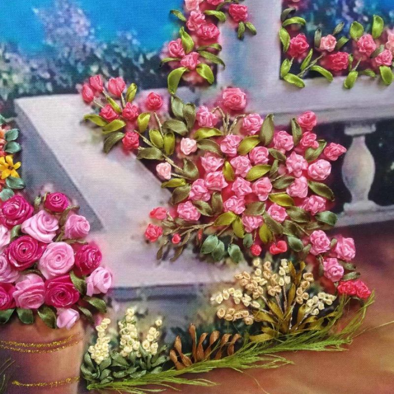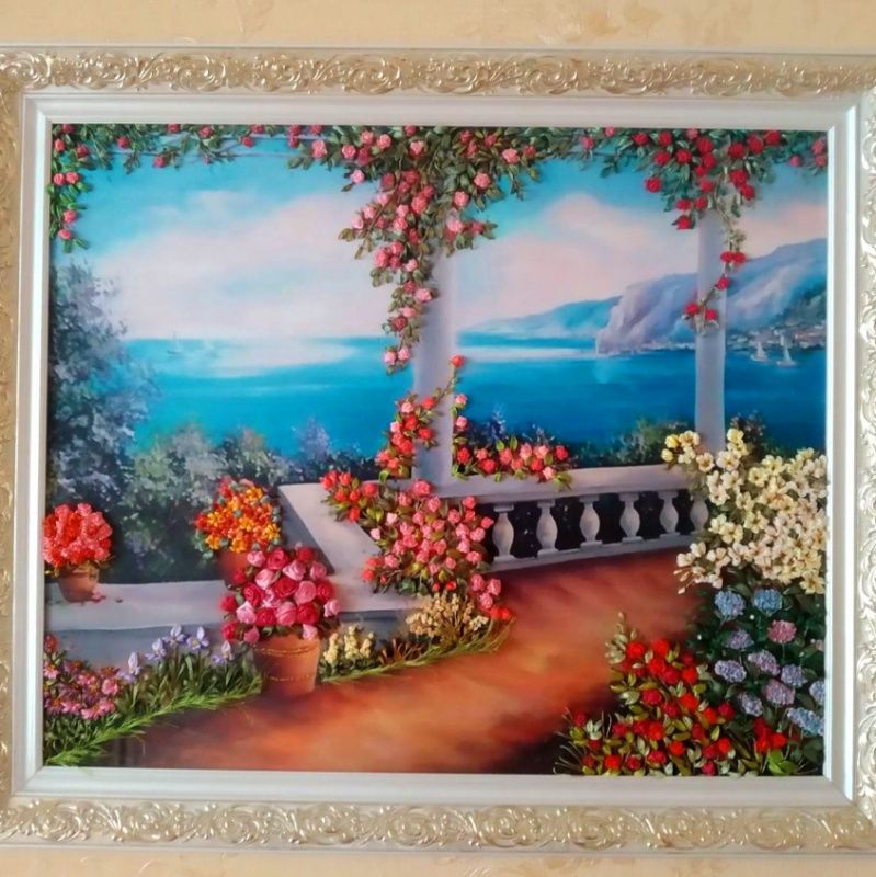 Картина вышита атласными лентами, бисером и шёлком на качественном принте, тонирование после вышивки. Рамка деревянная, багет 7см. Прекрасный подарок к любому празднику и торжеству: на свадьбу, новоселье, юбилей...Размер 50*60см