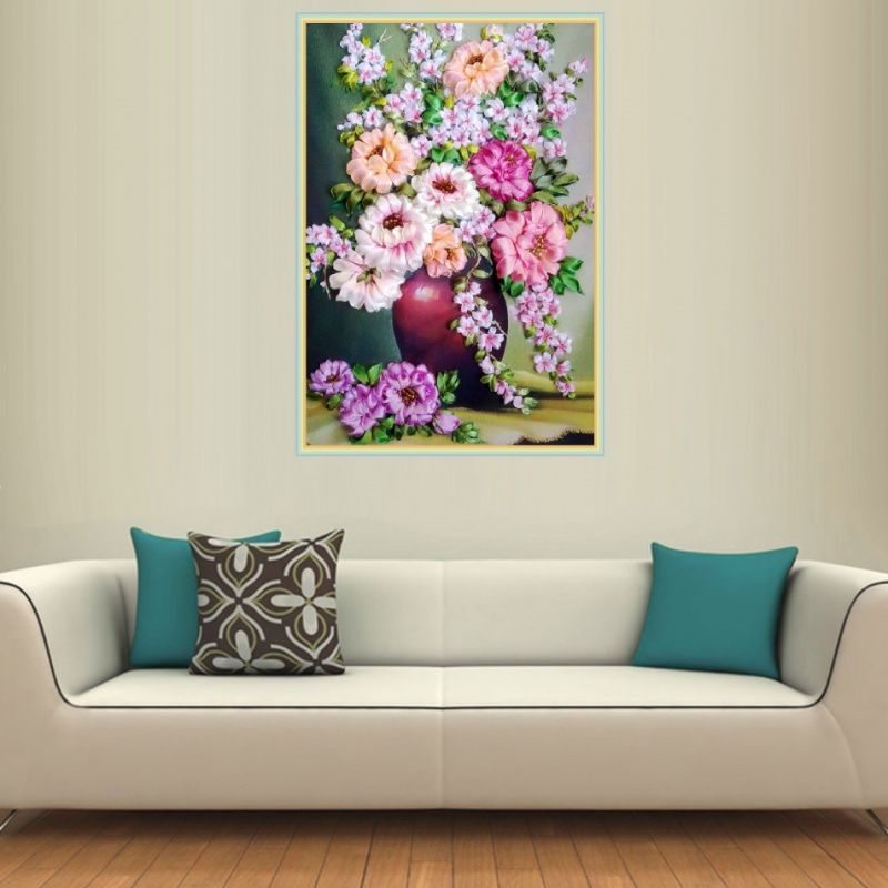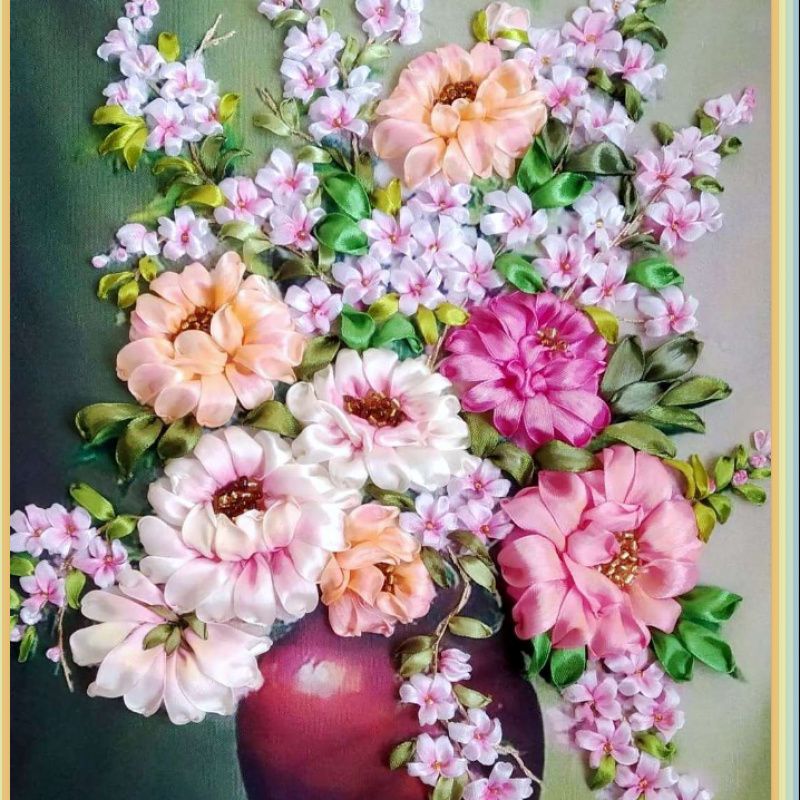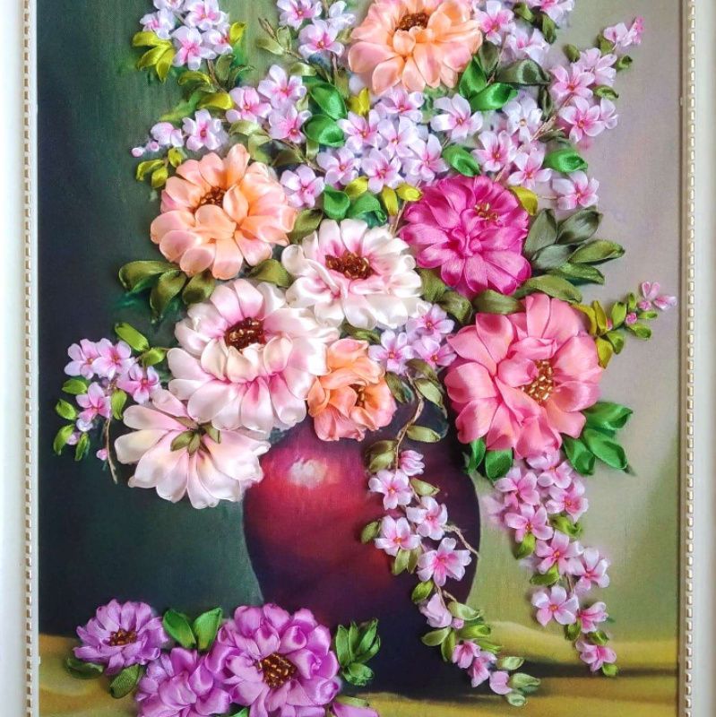 Картина вышита атласными лентами, бисером и шёлком на качественном принте. Подарок лентами - эксклюзивно и оригинально! Не все знакомы с техникой ′вышивка лентами′.