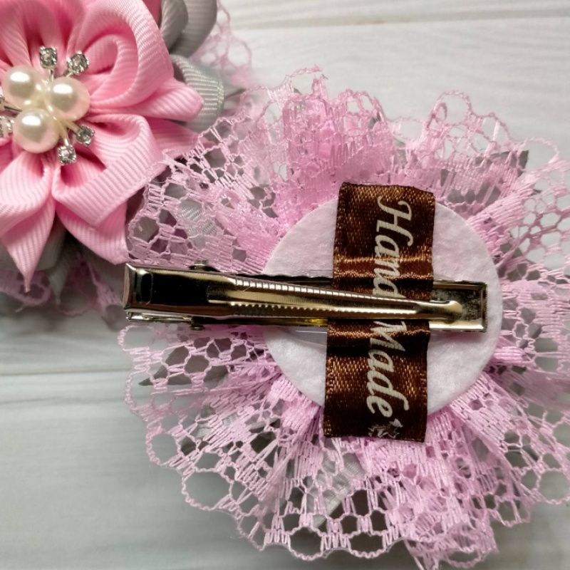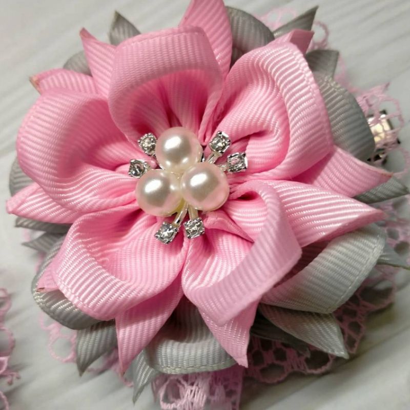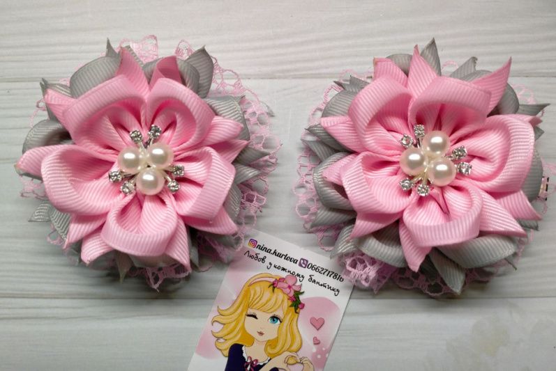 Нежные розово-серого цвета цветка украсят головку вашей девочки. Основа заколка 5.5см.Цина указана за пару. Возможно изготовление на заказ.