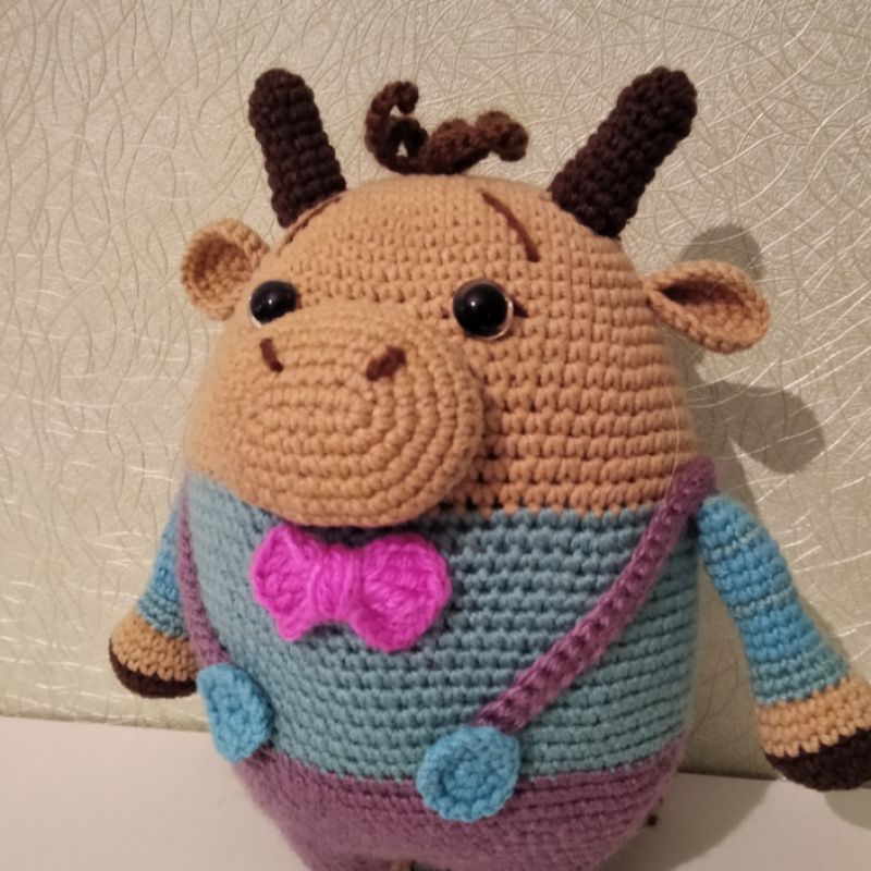 Игрушка изготовлена из экологически чистой пряжи, связанная крючком, наполнитель холофайбер, можно стирать