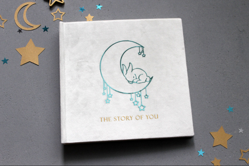 Альбом виготовлено з велюрової тканини, дизайнерського картону, золотої та чорної термоплівки. Аркуші зшиті та склеєні між собою.