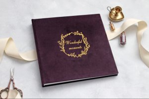 Красивый бархатный фотоальбомы глубокого сливового цвета будет отличным подарком для жены, подруги или мужу. Альбом имеет чистые листы, а потому является универсальным подарком по случаю любого события или торжества. Альбом изготовлен из велюровой ткани, дизайнерского картона и золотой термопленки. Листы сшиты и склеены между собой. Это классический фотоальбом - фото нужно вклеивать самостоятельно с помощью фотокутикив, Фотоскотч или фотоклею (на ваш собственный выбор). Размер 23х23 см, 20 молочных листов (40 страниц). Количество фото зависит от их размера и количества страниц. Например: 10х15 см - 40-80 шт. 13х18 см - 20-40 шт.