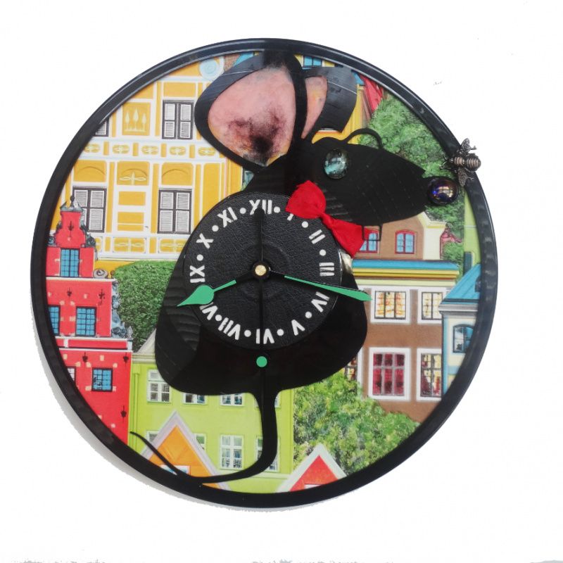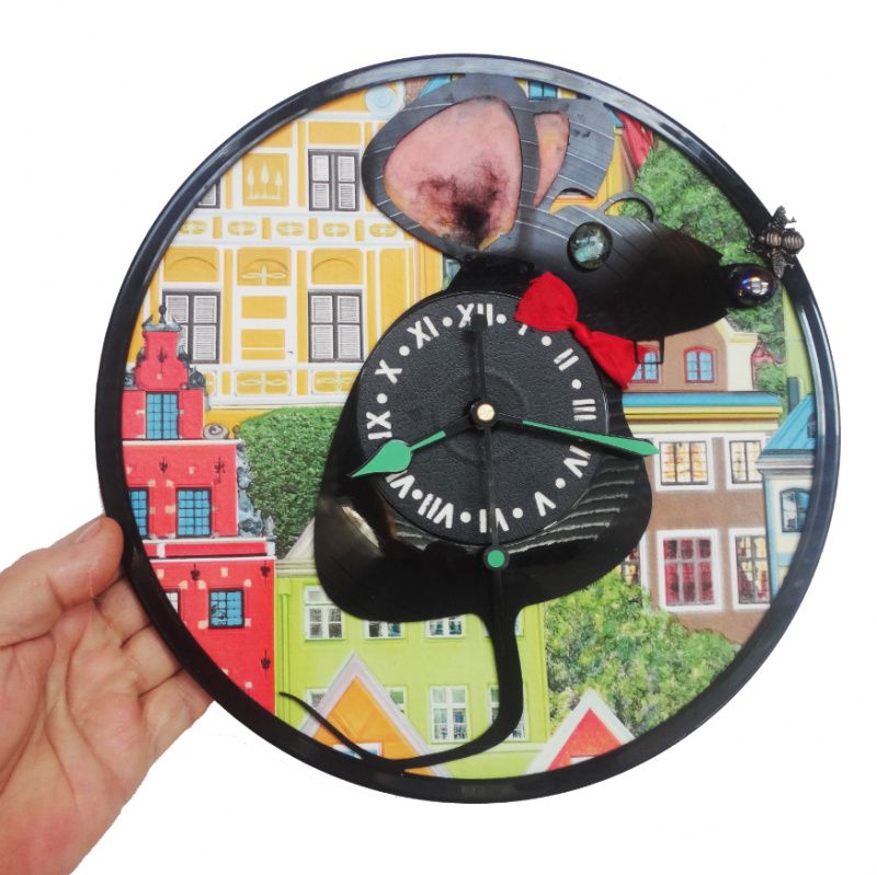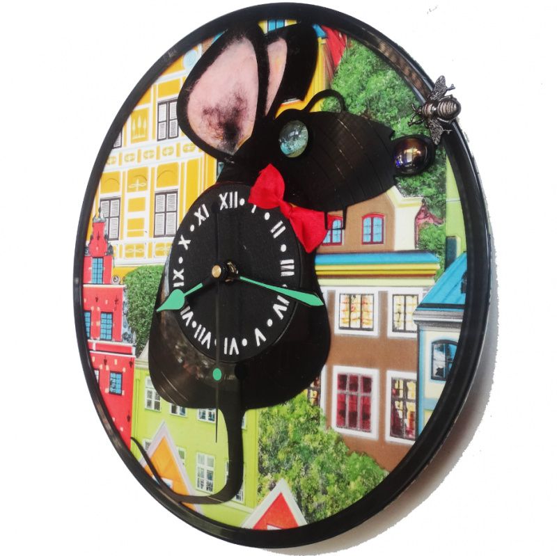 Настенные часы в детской 'Мышь' со светоотражающими стрелками. Отличный подарок на Рождество и Новый Год.
