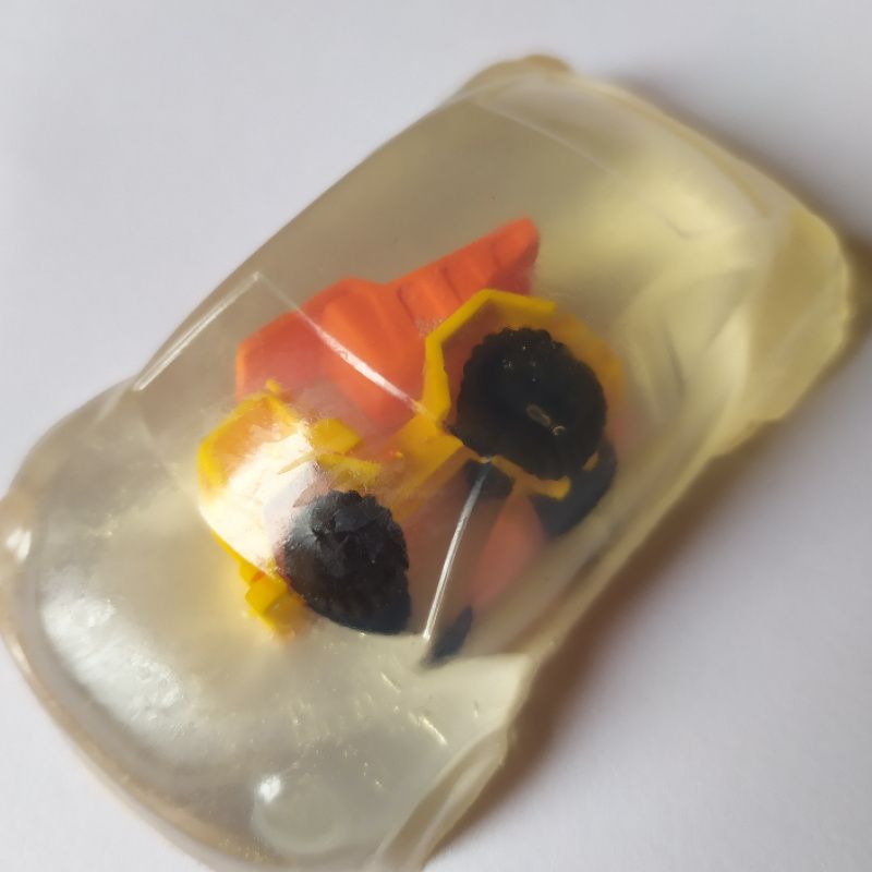 Мыло для ребенка с игрушкой из киндера-сюрприза. Состав: мыльное основание оливковое Forbury (Англия), рафинированное масло авокадо, эфирное масло грейпфрута, отдушка лимон. Внимание!!: игрушка для детей от 3 лет. Игрушка самосвал из пластмассы.