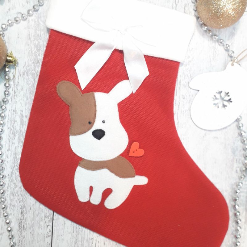 Новогодняя носок из ткани. Высота 28 см, ширина также 28 см, высота подвеса - 9 см. Изготовлена из ткани вручную и с помощью швейной машины. Носок декорирована аппликацией из фетра и других тканей. Можно использовать для оформления новогоднего и Рождественского интерьера или для подарков детям и взрослым на Новый год, праздник Николая. Также хорошая идея будет для корпоративного подарка на заказ. Есть возможность изготовить в любым именем на специальном ярлыке или сверху носки на заказ. При пожелании является праздничное упаковки.