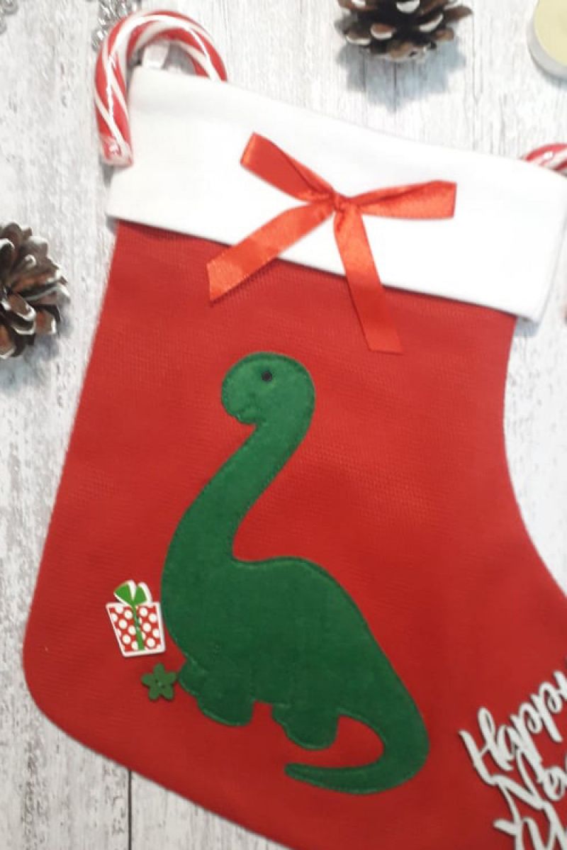Рождественская носок с динозавром