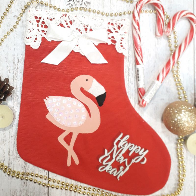 Праздничная носок с фламинго