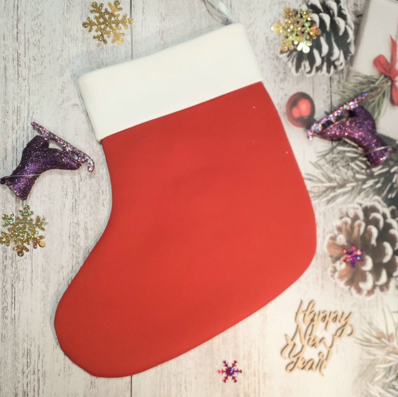 Новогодняя носок из ткани. Высота 28 см, ширина также 28 см, высота подвеса - 9 см. Изготовлена из ткани вручную и с помощью швейной машины. Носок декорирована аппликацией из фетра и других тканей. Можно использовать для оформления новогоднего и Рождественского интерьера или для подарков детям и взрослым на Новый год, праздник Николая. Также хорошая идея будет для корпоративного подарка на заказ. Есть возможность изготовить в любым именем на специальном ярлыке или сверху носки на заказ. При пожелании является праздничное упаковки.