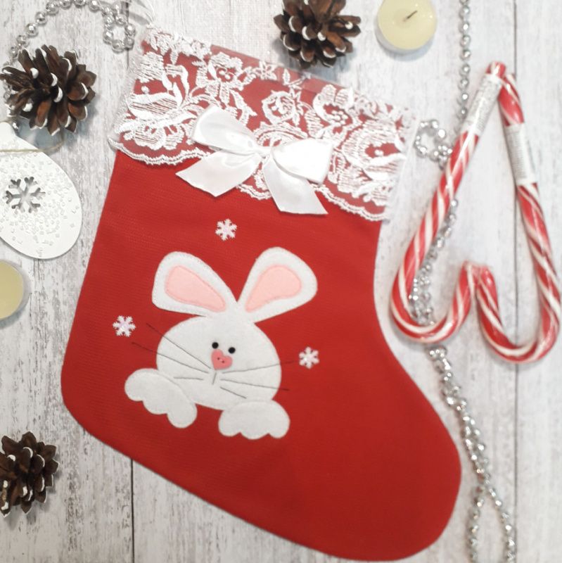 Праздничная носок с зайчиком