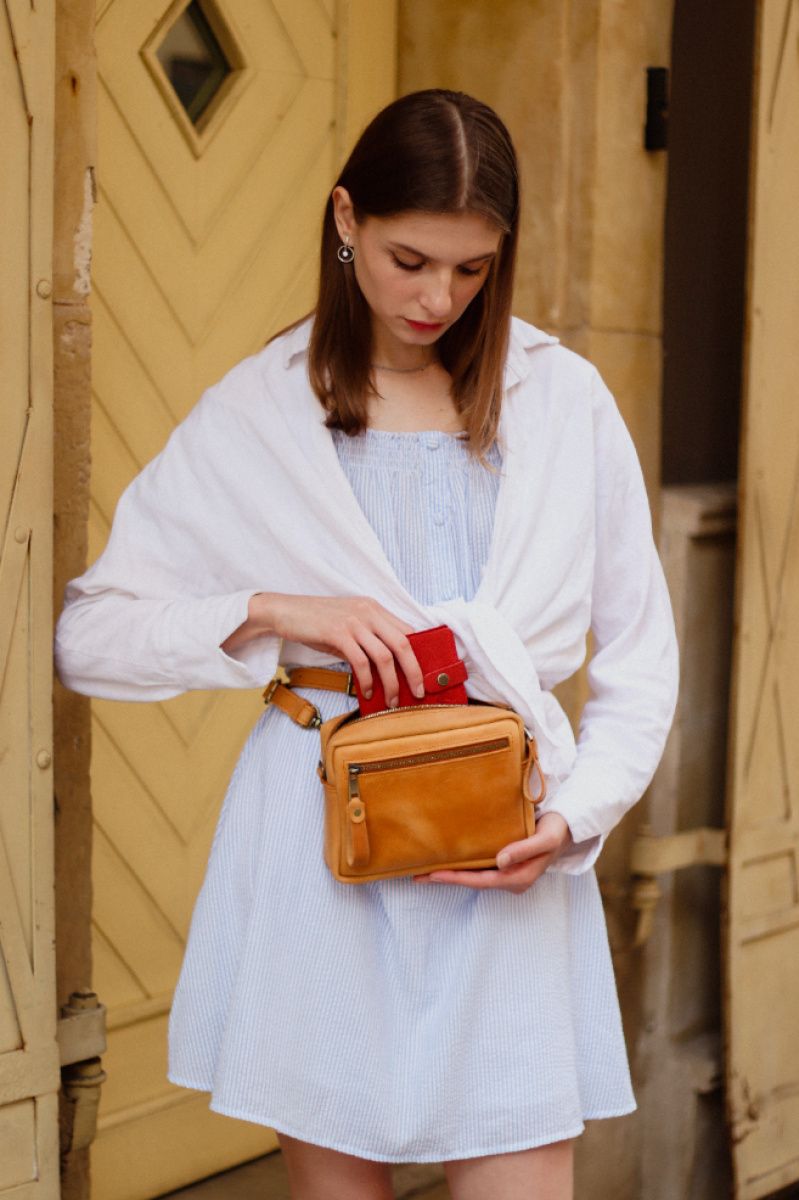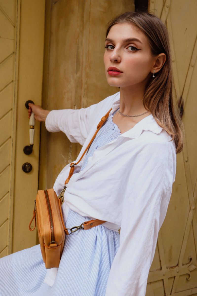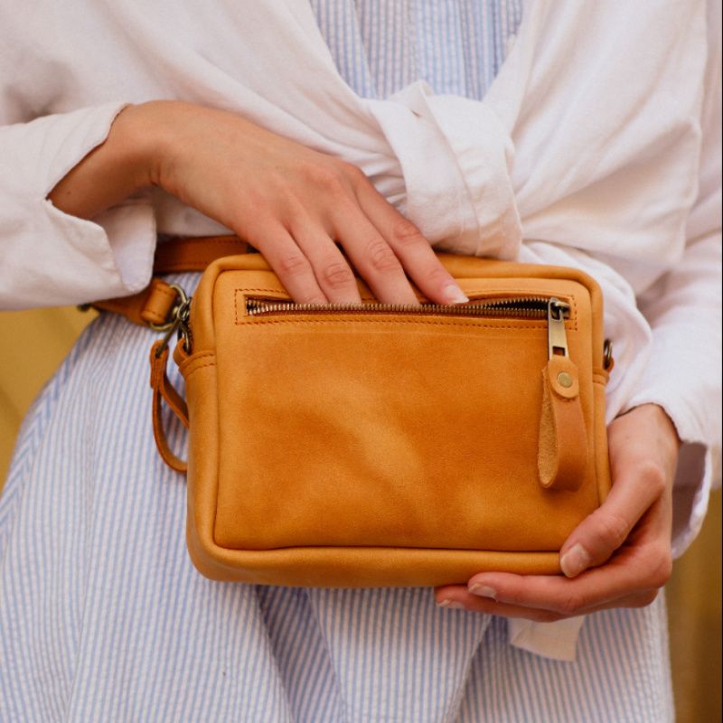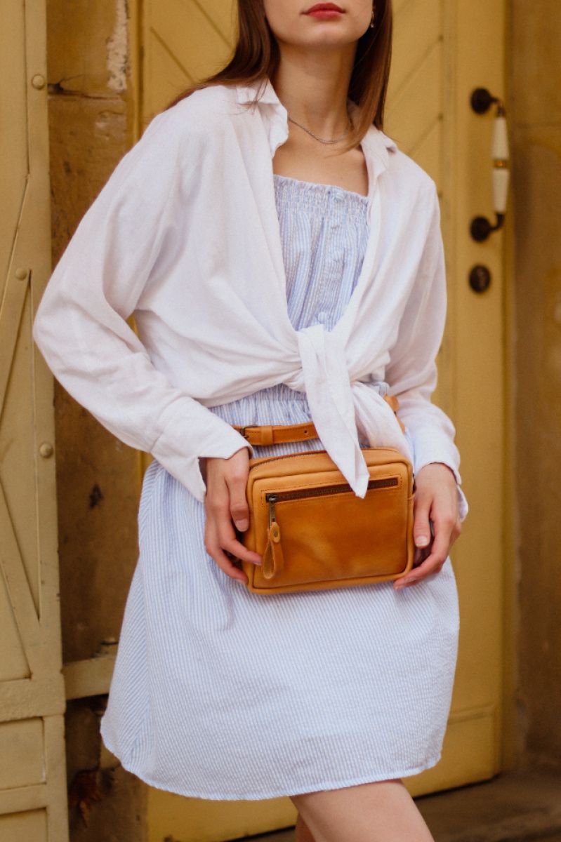 Очень популярная модель поясной сумки 2018 года. Она совсем небольшая, но в ней можно легко поместить самые необходимые вещи - документы, ключи, телефон. Сумочка застегивается на замок . Под клапаном наружный кармашек на молнии. Внутри основное отделение. Ремень на карабинах регулируется по длине. Сумку можно носить на поясе, на плече или в руке.