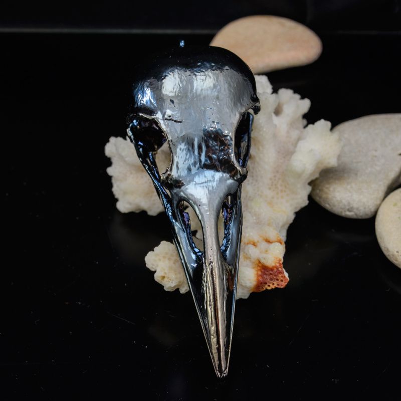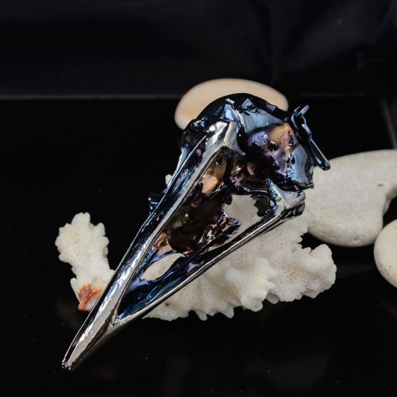 Настоящий череп птицы покрыт медью, никелем и металлом платиновой группы - рутением.