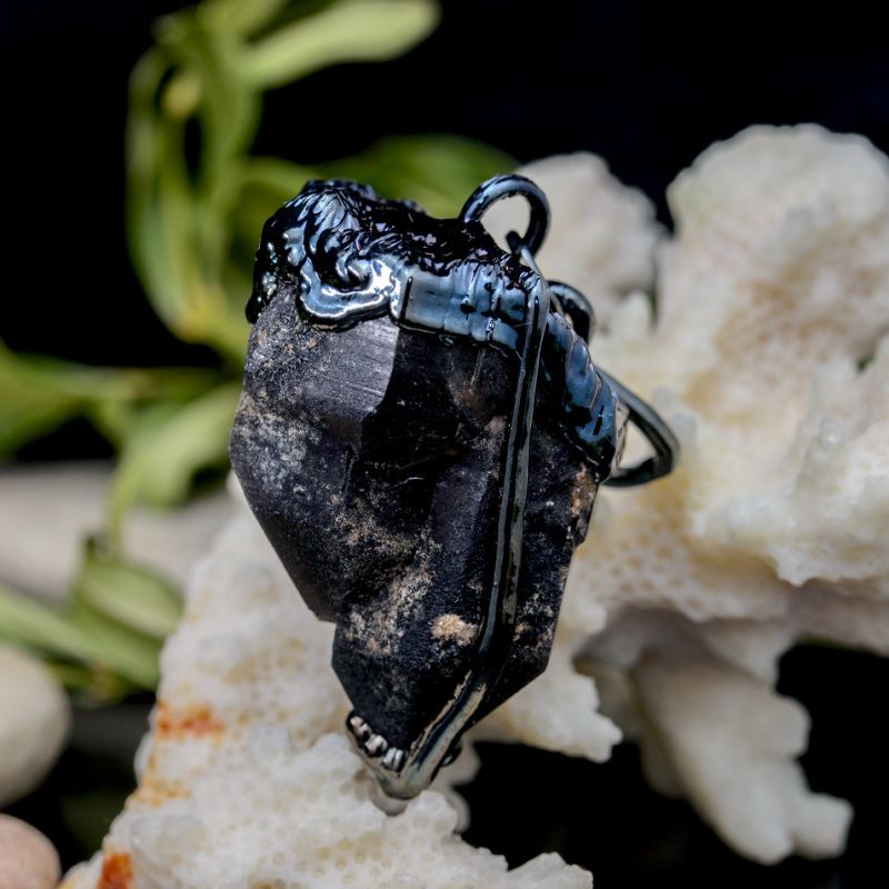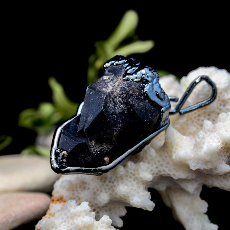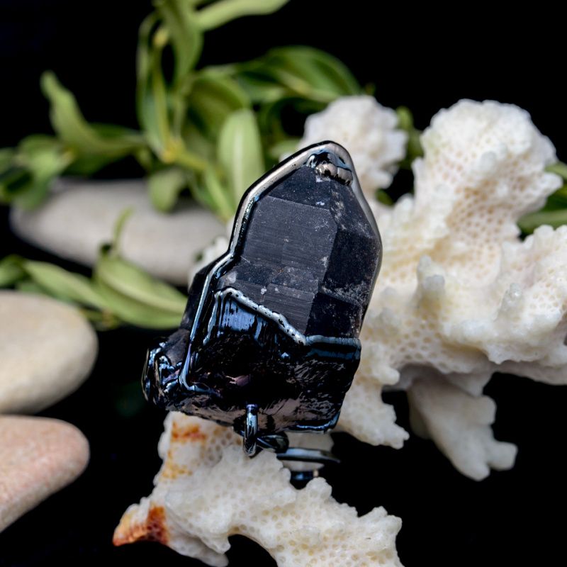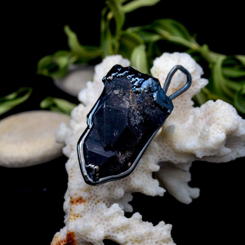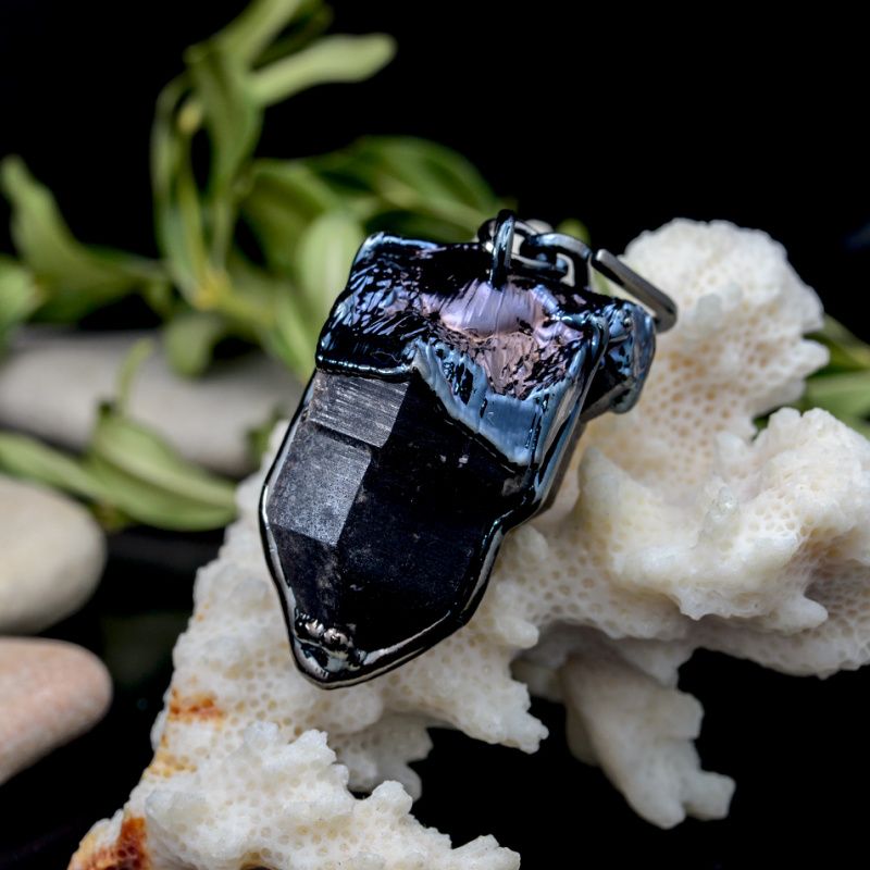Не большой природный необработанный кристалл мориона покрыт медью, никелем и драгоценным металлом – рутением. Камень имеет естественные включения, трещинки и шероховатости. Чтобы увидеть короткое видео, напишите в личные сообщения.