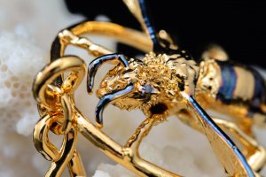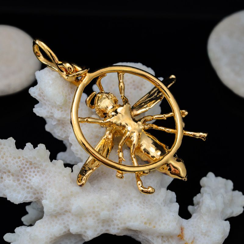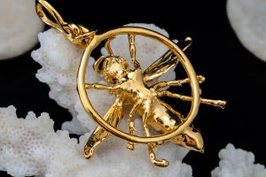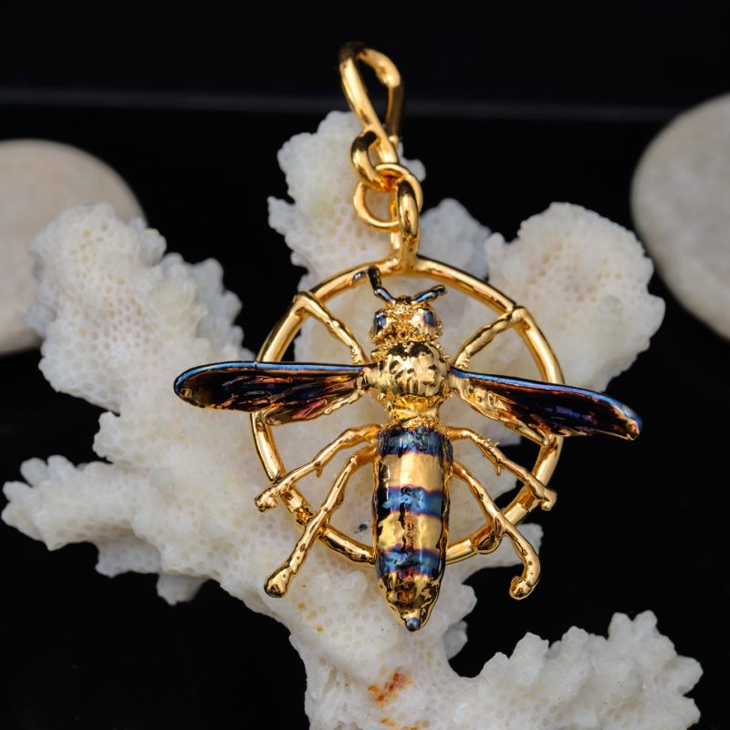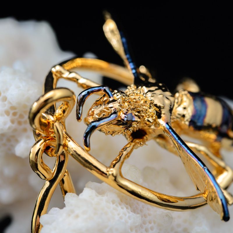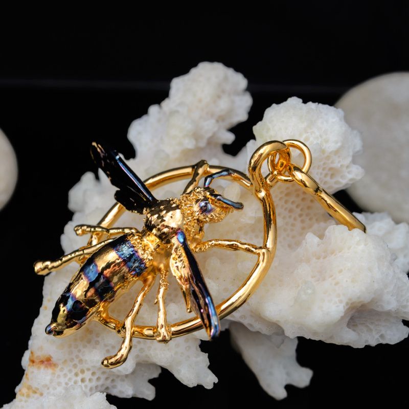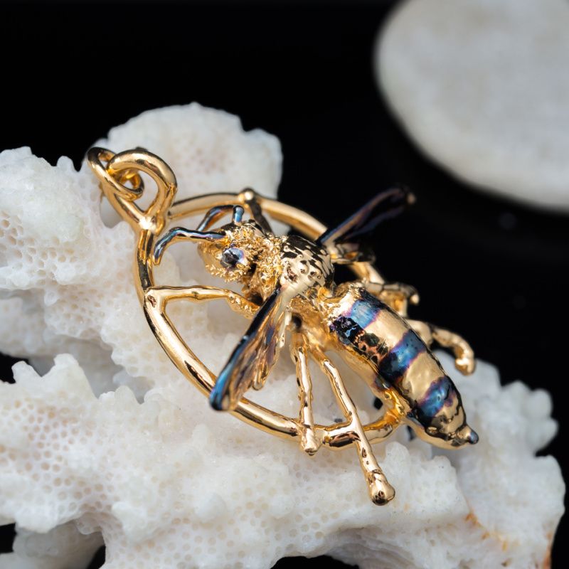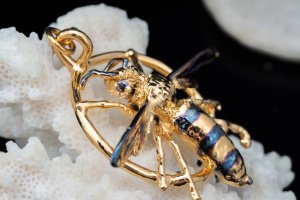 Настоящий шершень покрыт медью, кобальтом и золотом. Локальное нанесение черного родия для создания реалистичного дизайна.