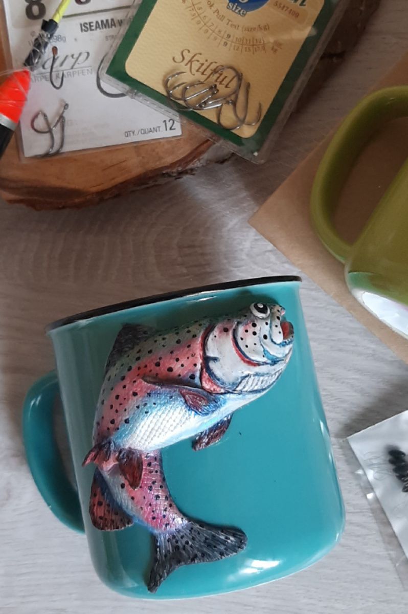 Кружка декорированная рыбой Форель, станет отличным подарком для рыболова. Кружка керамическая с имитацией железных кружок, декор ручная работа, материал полимерная глина.