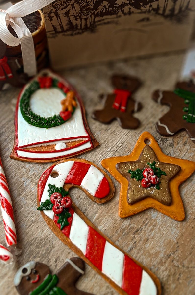 Набор елочных украшений в виде медовых и шоколадных пряников. Набор состоит из 3 игрушек 9 см и 4 игрушек 5 см. Таким подарком можно порадовать знакомых, родных, друзей и коллег по работе. Ручная работа, высококачественная полимерная глина.