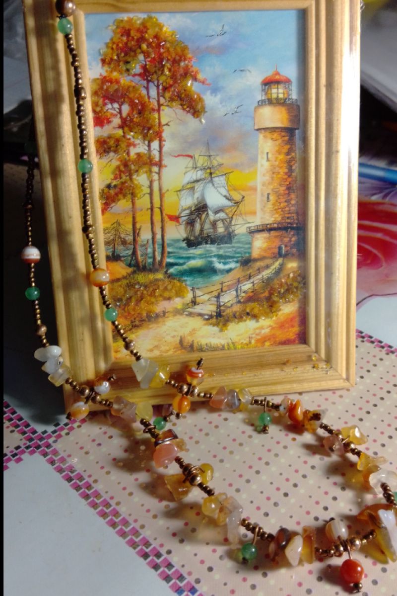 Сердолик - камень ведущий по зову сердца... Ну и несколько нефритовых бусинок, не дающих совершить ошибку..Мало ли, куда зов сердца потянет... А так, всё в порядке.