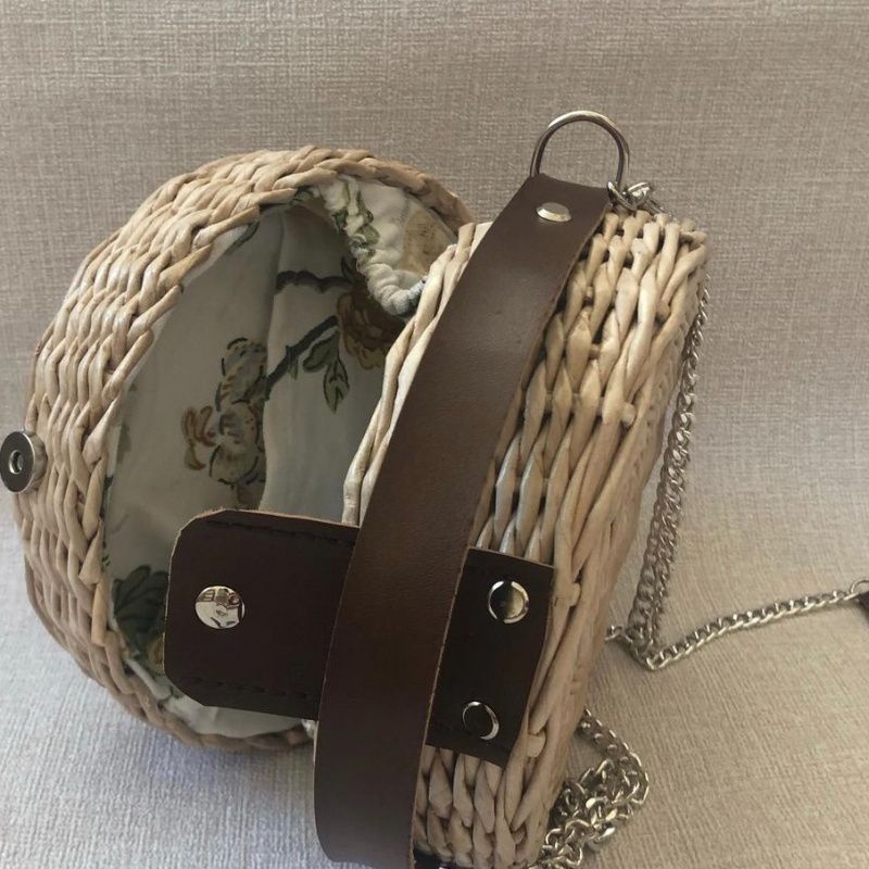 Сумочка сплетена з паперової лози, оброблена захисними засобами високої якості без запаху і шкідливих домішок. Дуже міцна, вологостійка. Вона не розмокне під дощем, перевірено!
