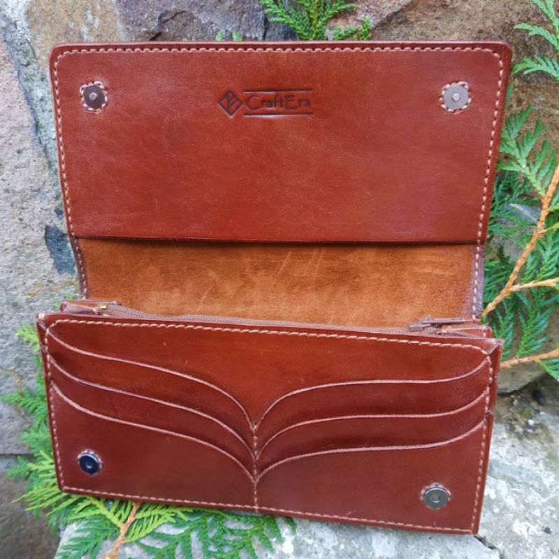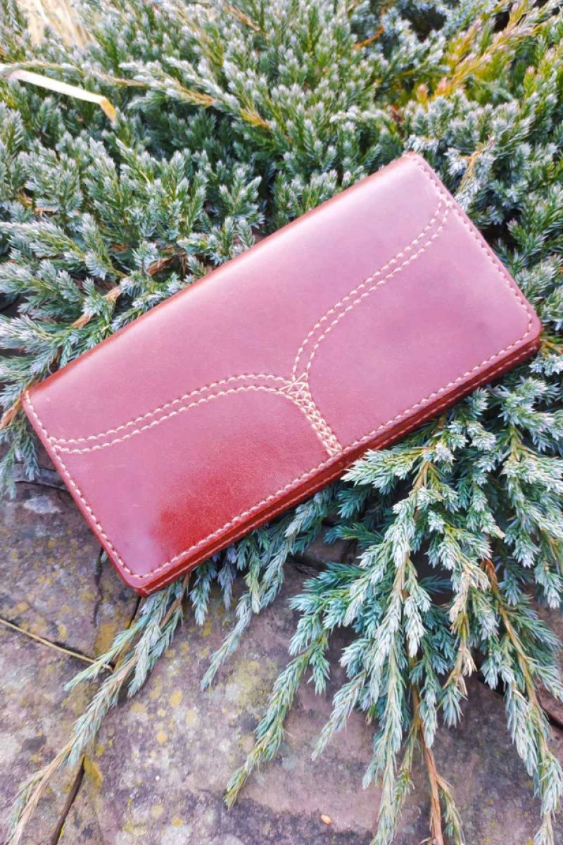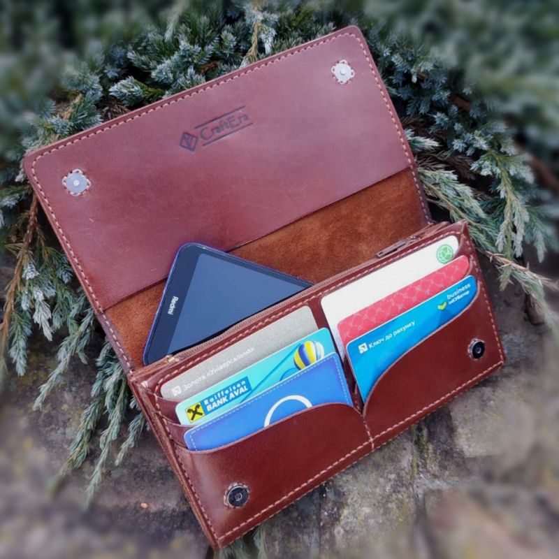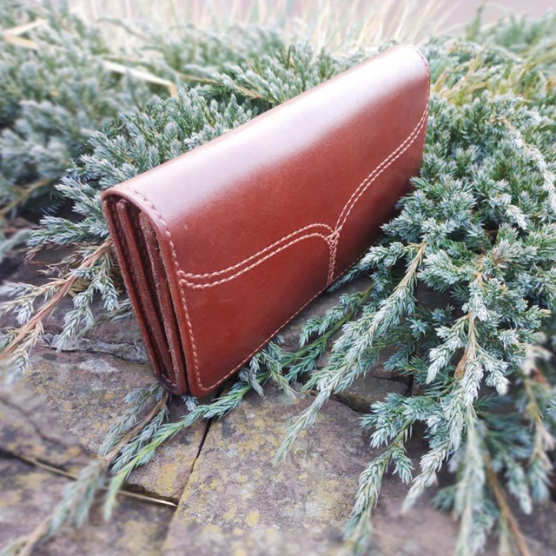 Женский кожаный кошелек, портмоне полностью ручной работы. Естественная кожа. При изготовлении использованы только экологичные материалы. Кожа приятна на ощупь, без лишних запахов химии. Размеры 195х95х20мм. 4 больших отделения + 6 отделений под карточки. Филиал под монеты с замком. Верхний клапан на магнитных фиксаторах. Производится под заказ. Срок 2-3 раб. дни. Есть возможность учесть ваши пожелания в изготовлении. Напишите пожалуйста в сообщение.