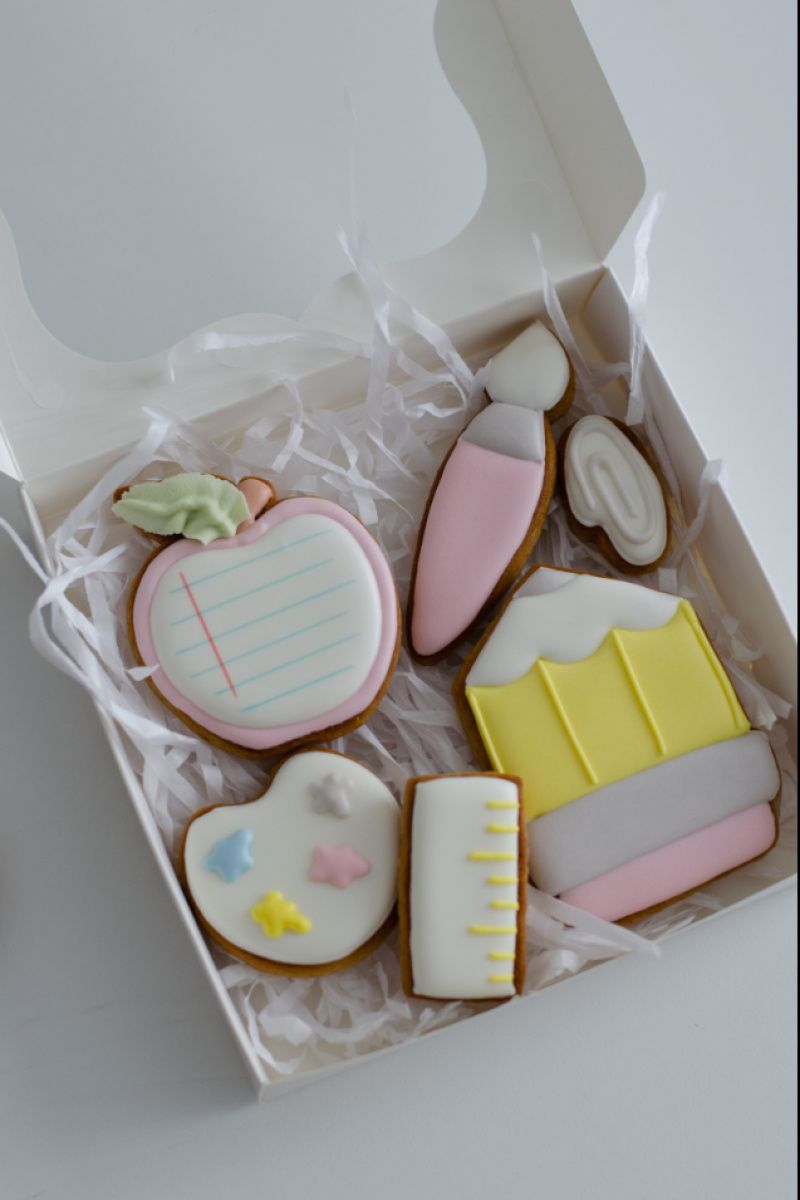 Набор имбирно-медовых пряничка идеально подойдет как школьникам, так и учителям. В коробочке 15 * 15 см 6 пряничка. Каждый пряник покрыт глазурью на основе пастеризованного яичного белка, с использованием пищевых красителей американского производства. Пряничка вкусные и мягкие, на натуральном меде, качественном сливочном масле, с добавлением пряностей. Сделанные с любовью ♥ ю