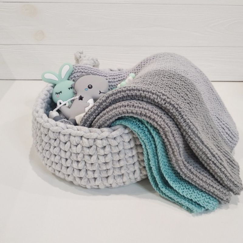 Хлопчатобумажный демисезонный плед из пряжи YarnArt Jeans, который удобно использовать в коляске на прогулке, в машине или детской кроватке. Гипоаллергенный материал, легкая стирка, средняя вязкая: плед не будет слишком теплым, но будет сохранять комфортную температуру для малыша. Размер пледа: 80 * 100 см, его можно использовать с рождения ребенка и до 4-х лет (для ребенка выше 116 см уже короткий). ---- Характеристики: 1️⃣ Цвет: серый, светло-серый и мятный 2️⃣ Материал: пряжа YarnArt Jeans 3️⃣ Размеры: 80 * 100 см. ---- ⛔ Внимание! Рекомендуемый режим стирки - деликатный при 30-40С!