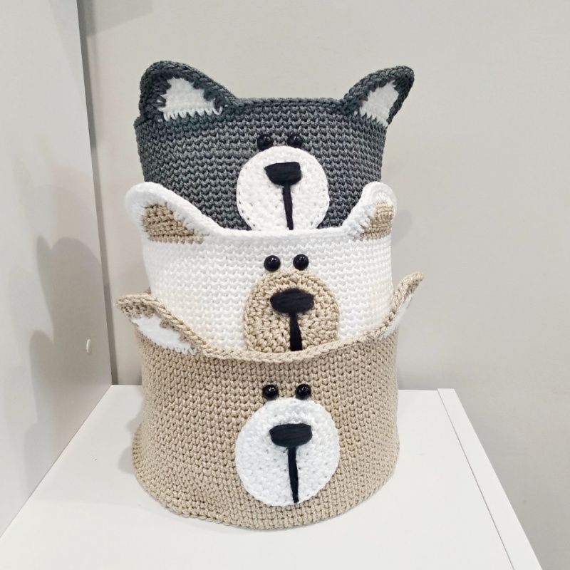 ⭐Набир корзин интерьерных из трикотажной пряжи для детской комнаты и не только. Поможет мамы ребенка организовать пространство и собрать все мелочи в одном месте! ⭐ ---- Характеристики: 1️⃣ Цвет: бежевый, белый 2️⃣ Материал: 100% полиэстер 3️⃣ Материал дна: полиэстер 4️⃣ Размеры: донышко - 21 см, высота - 13 см. ---- ⛔ Внимание! Деликатная стирка при 40С.