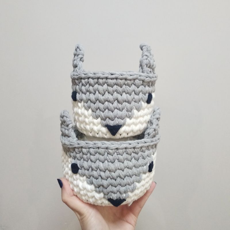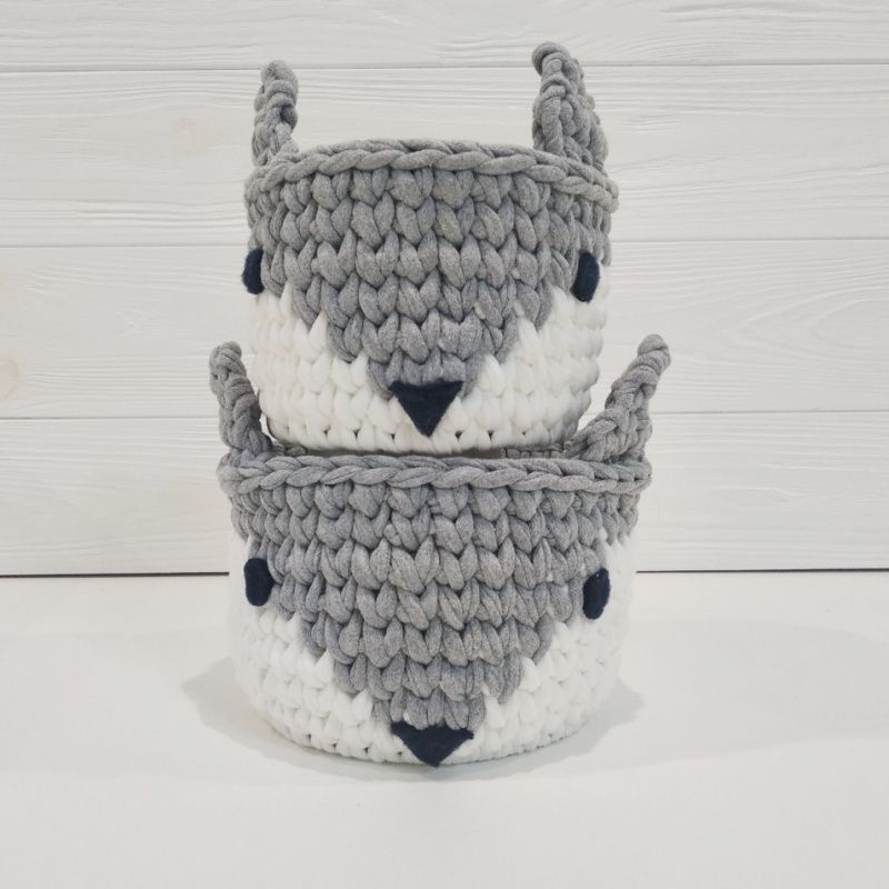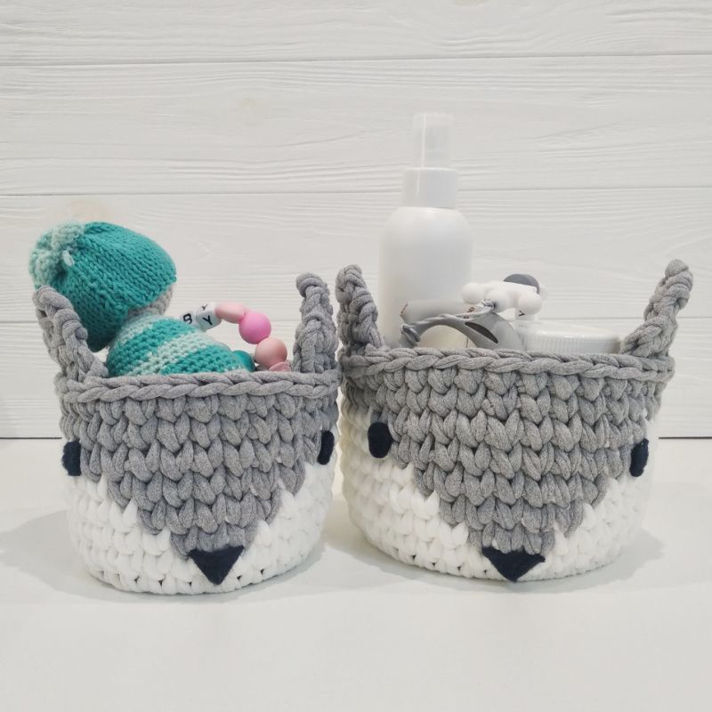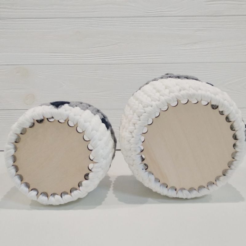 ⭐Набир корзин интерьерных из трикотажной пряжи для детской комнаты и не только. Поможет мамы ребенка организовать пространство и собрать все мелочи в одном месте! ⭐ ---- Характеристики: 1️⃣ Цвет: серый, белый 2️⃣ Материал: хлопок 100% 3️⃣ Материал дна: дерево 4️⃣ Размеры: большая корзина: донышко - 12 см, высота - 9 см; меньше корзину: донышко 10 см, высота - 8 см. ---- ⛔ Внимание! Только ручная чистка, при интенсивной стирке донышко может деформироваться!