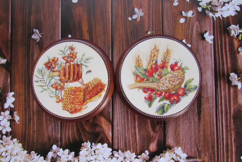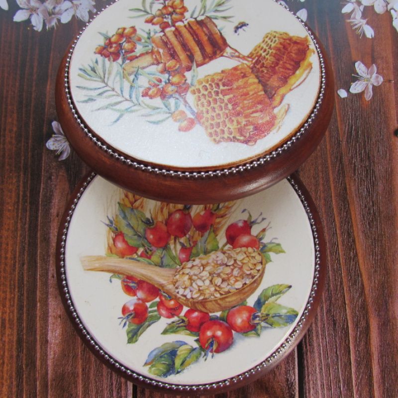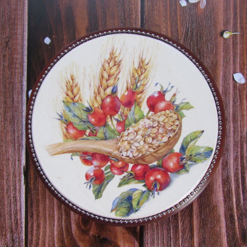 Подставка под горячее ,выпечку,для сервировки стола, выполнена в технике вживления изображения в дерево.