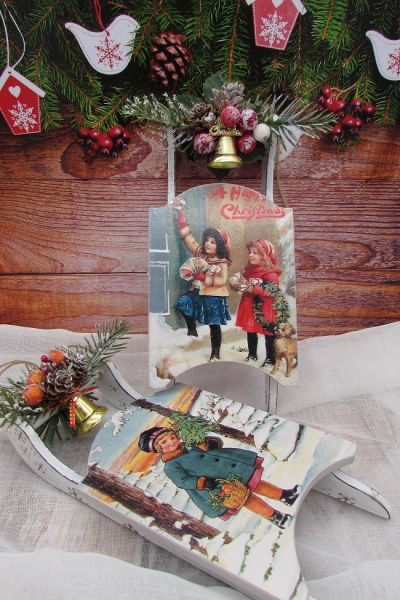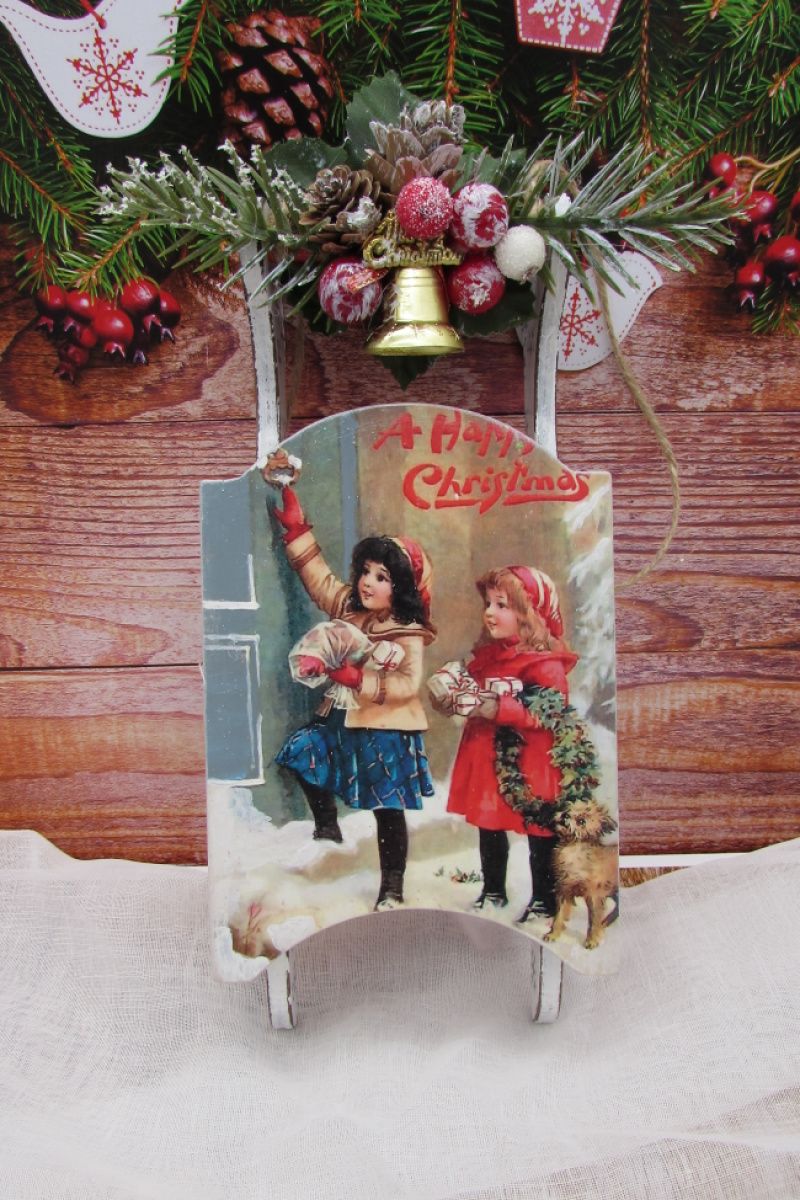 Санки можно повесить на стену для красочного новогоднего интерьера.