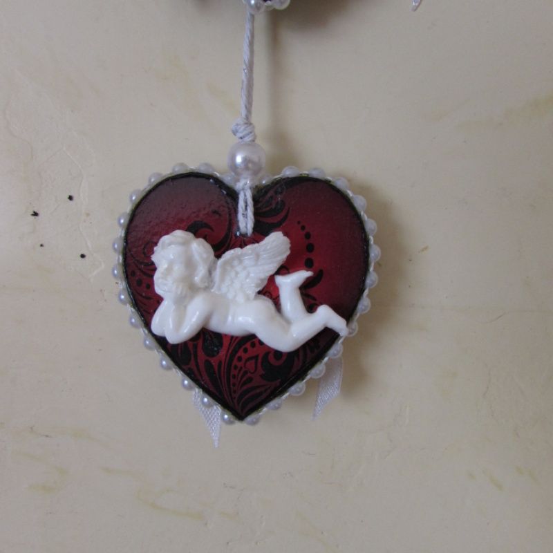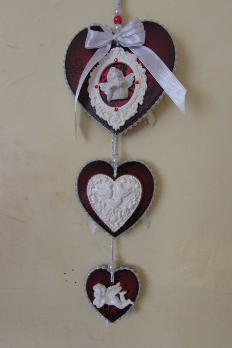 Подвеска двухсторонняя. На обратной стороне каждое сердечко украшено шильдой в форме сердца с бантиками.