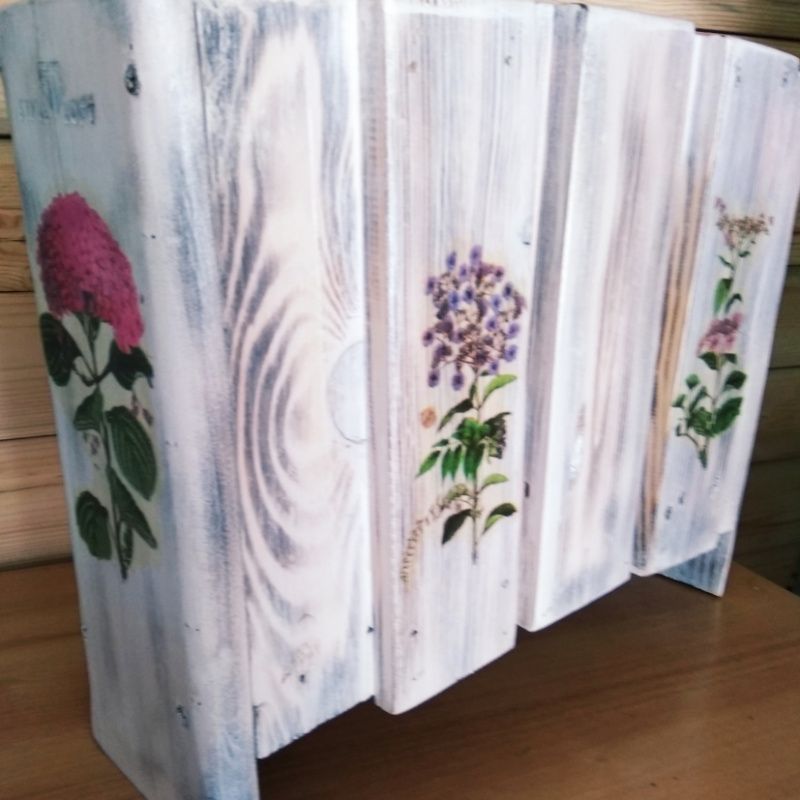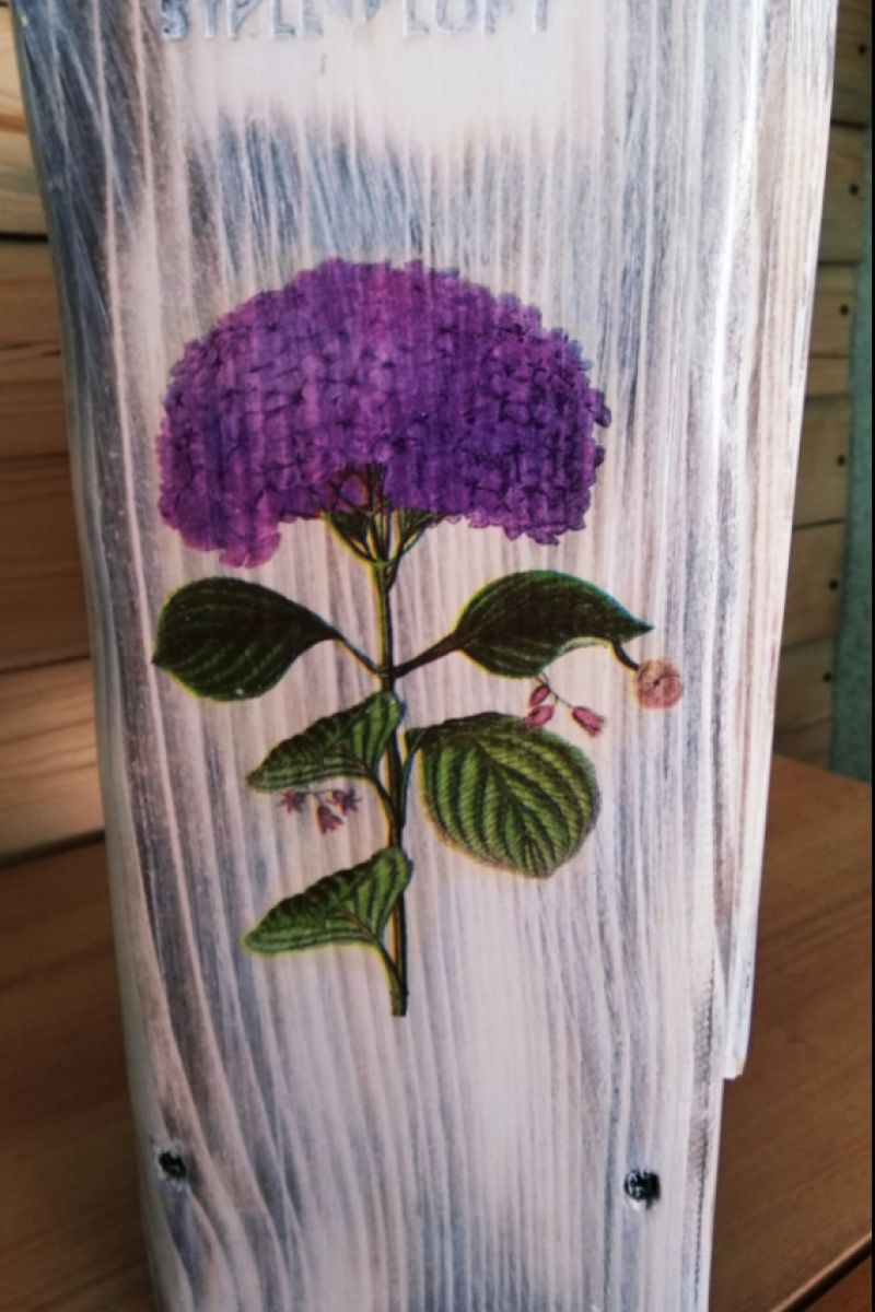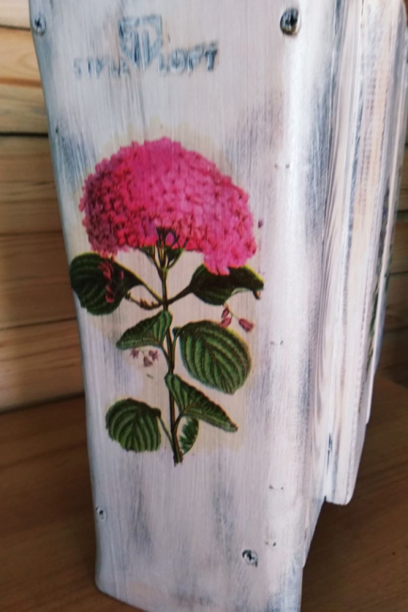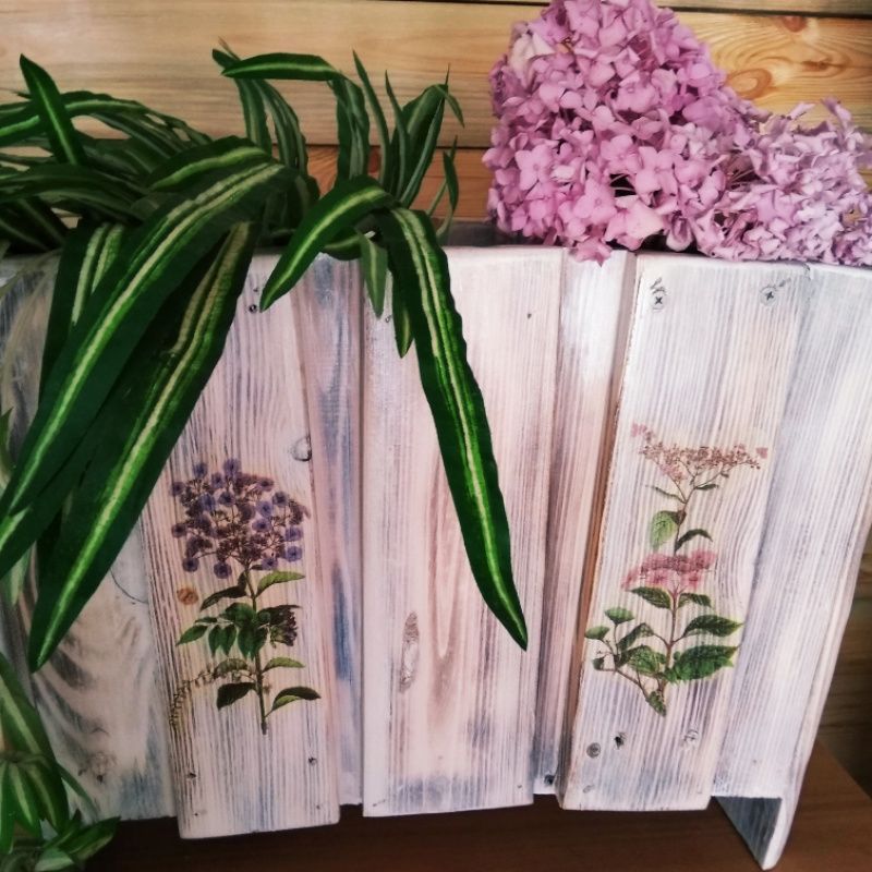 Оригинальный вазон для домашнего интерьера в стиле Провансаль ( с элементом обжига), Натуральное дерево. Дополнительный декор - декупаж.