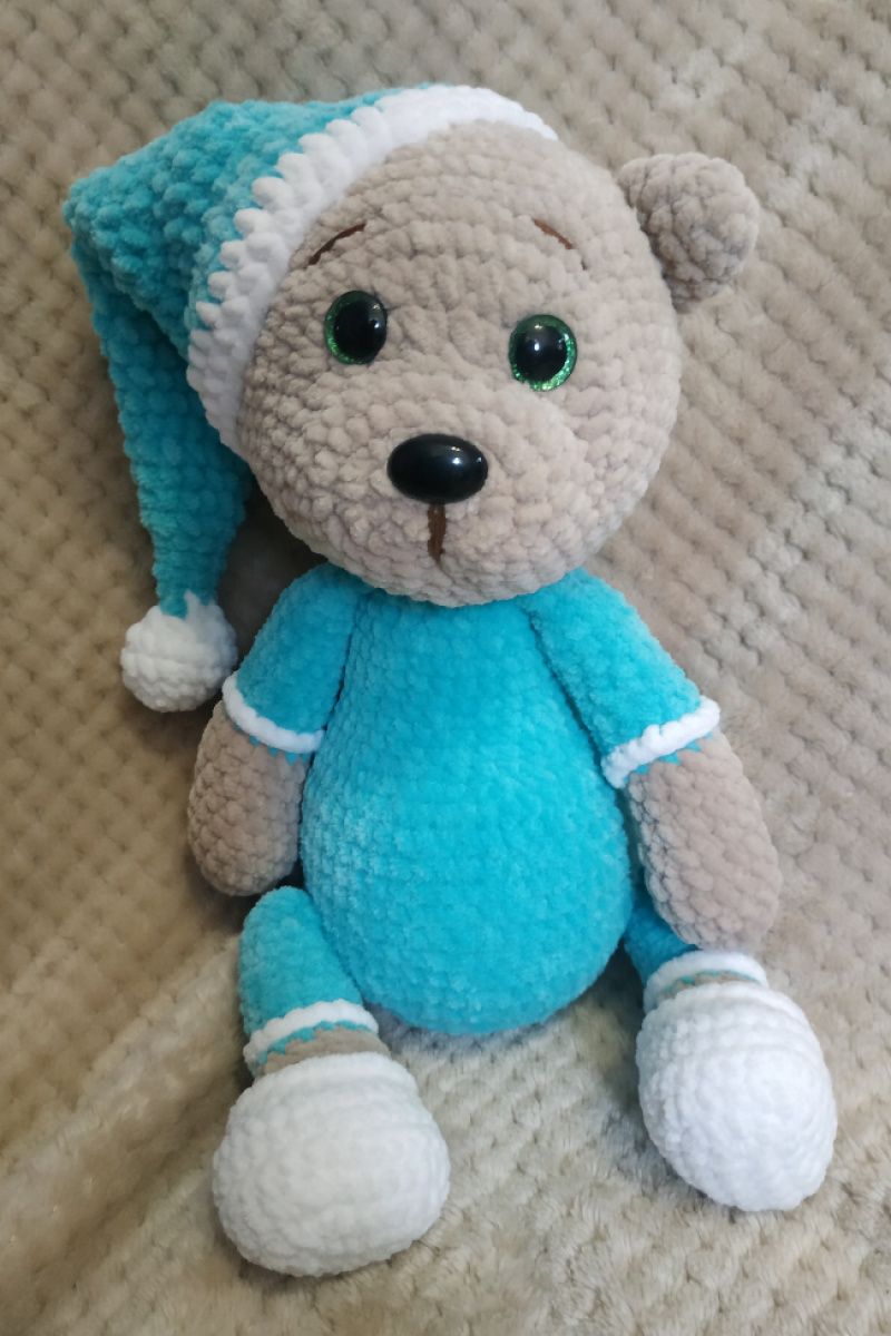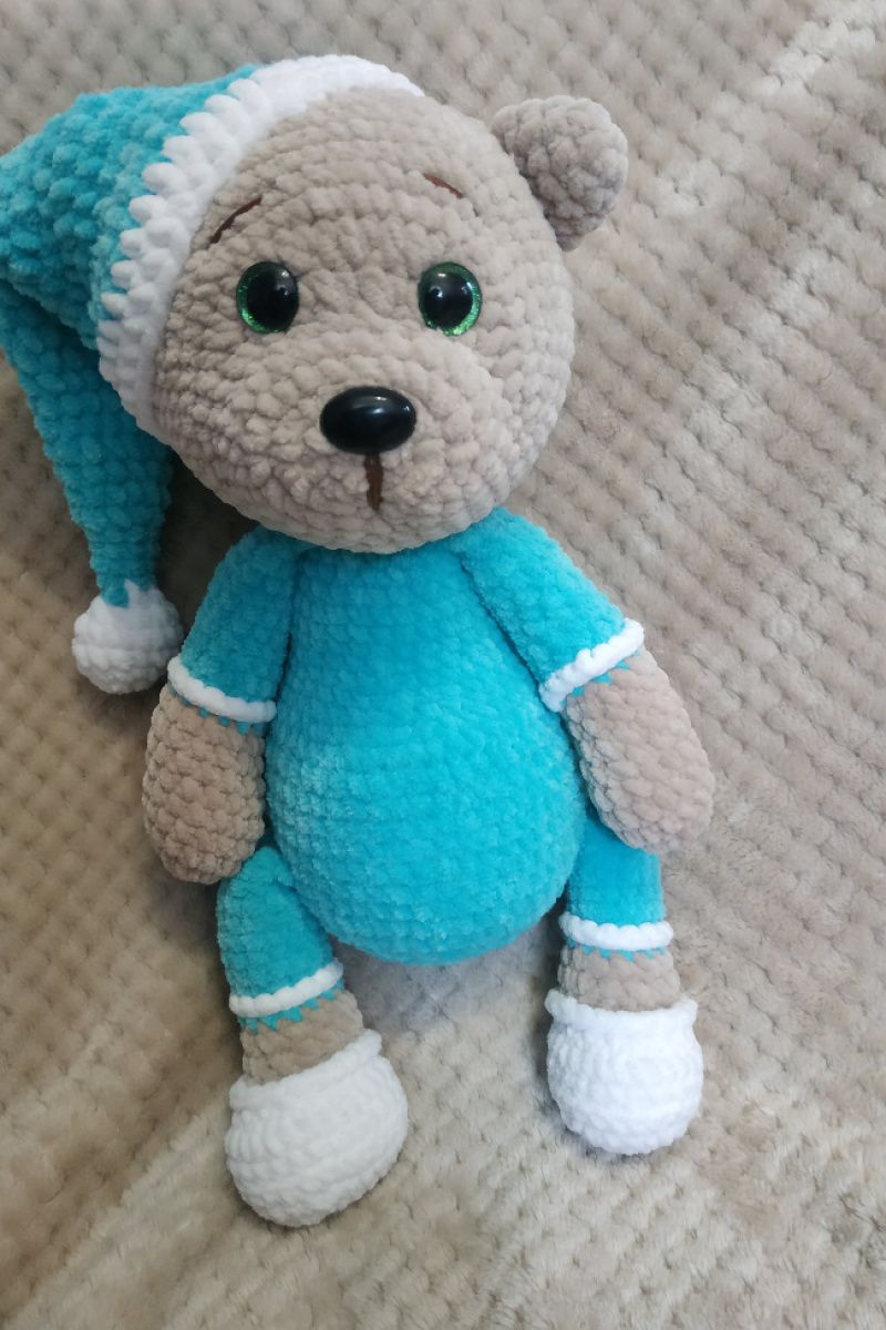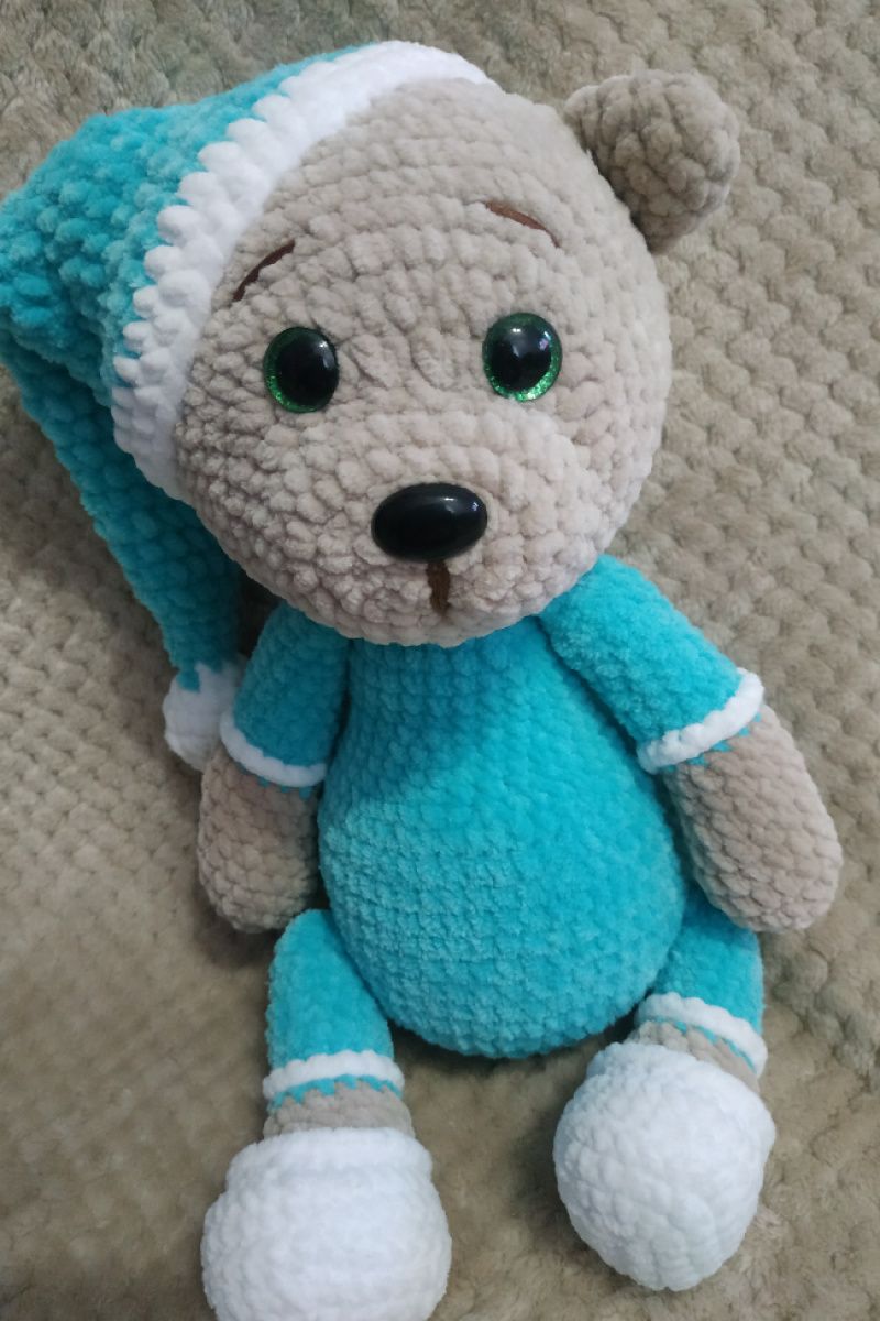 Мишутка соня, связан из очень мягкой плюшевой пряжи. Глазки и носик на безопасном креплении. Рост медвежонка 36 см. Станет лучшим другом любому малышу. Возможно сделать нашивку с метрикой или именем + 50 грн.