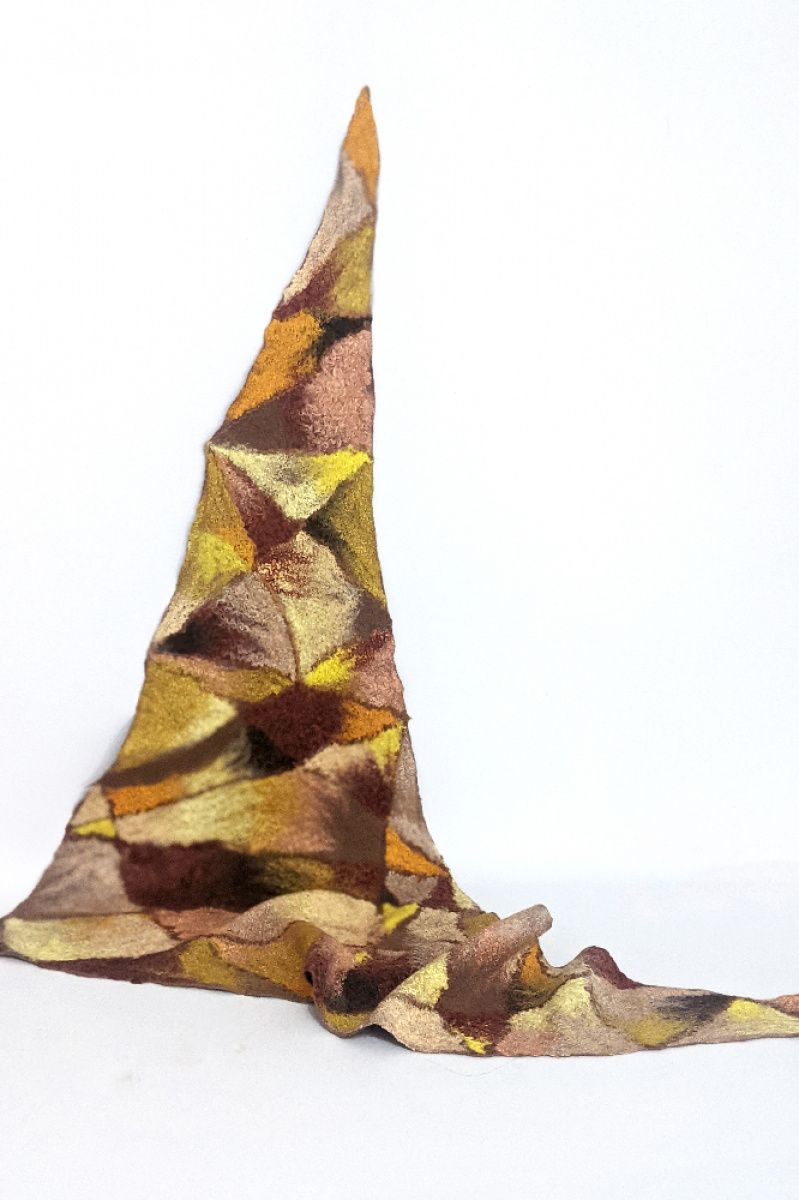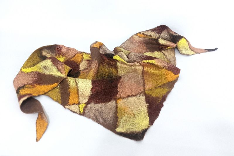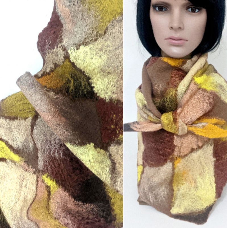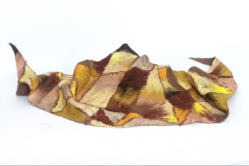 ′Жаркий полдень′ - валяный вручную бактус из нежнейшей овечьей шерсти , щедро украшенный растительными и шелковыми волокнами, действительно, нежный, мягкий, невесомый, приятный, лёгкий и , самое главное, очень теплый.
