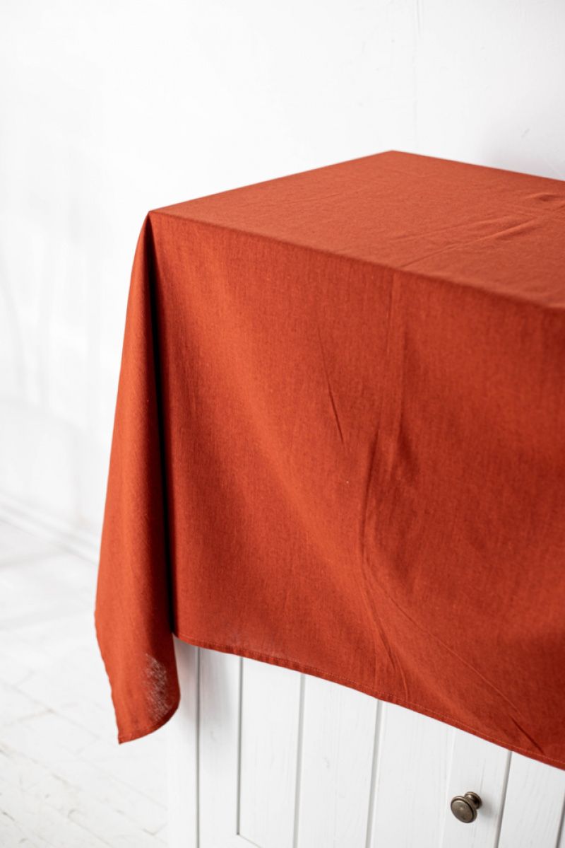 Скатертина з 100% льону. Вироби з льону довговічні і прості у догляді. Льон - міцний, дихаючий та антисептичний матеріал. Тканина гіпоалергенна і має терморегулюючі властивості.