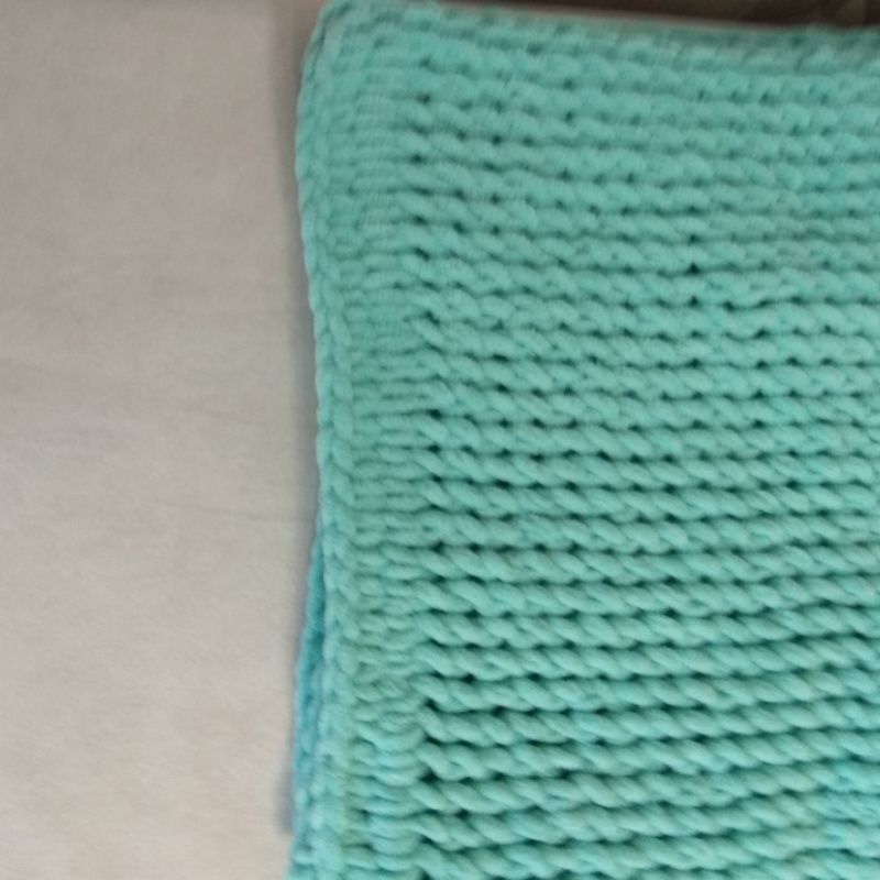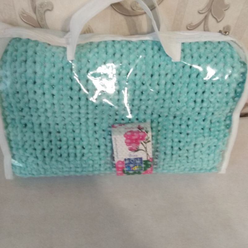 Детский плед выплетен руками из пряжи Ализе Пуфи Файн, большой вязки для кроватки или прогулки, цвета мята. Размер-85*105 см. Плед упакован в сумку на молнии с силиконовым прозрачным окошком с маленькими звездочками. В подарок – детское мыло с добавлением масла болгарской розы. Мыло безаллергенное, вес 100 гр., в оригинальной упаковке, производство Болгария.