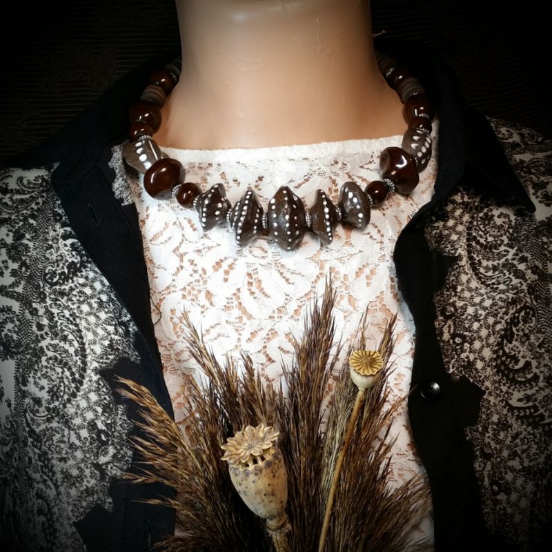 керамика ручной работы, фурнитура, шнур Декоративная часть 39 см. Полная длина 99 см.