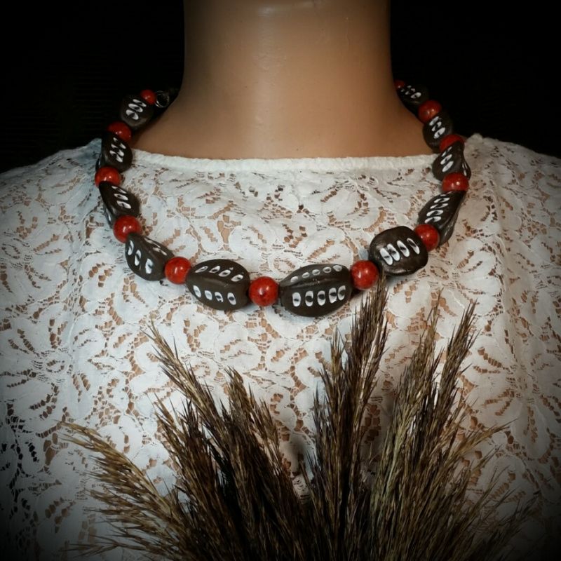 керамика ручной работы, прессованный коралл, фурнитура, шнур Декоративная часть 38 см. Полная длина 82 см.