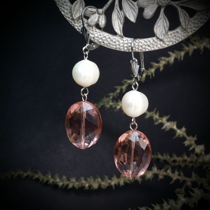 чешское стекло, жемчуг, фурнитура 6\1,6 см.