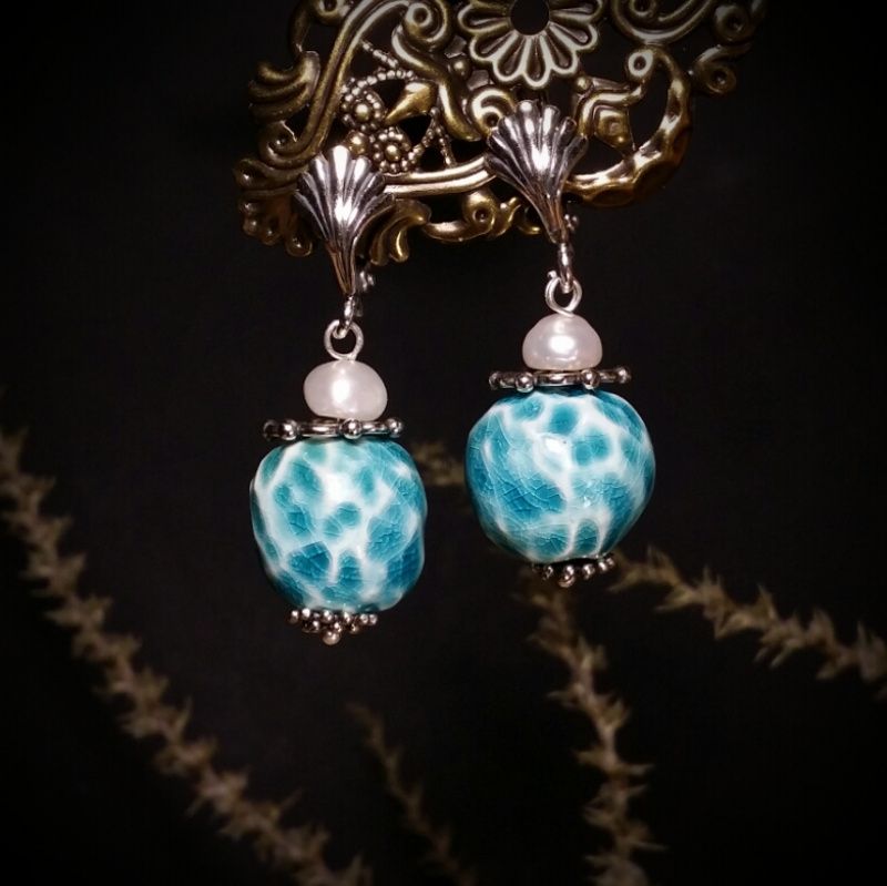 керамика моей ручной работы, жемчуг, серебро 925 4\1,5см.