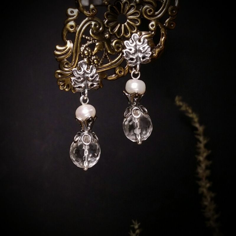 горный хрусталь, жемчуг, серебро 925 пробы 3,4\0,9 см.