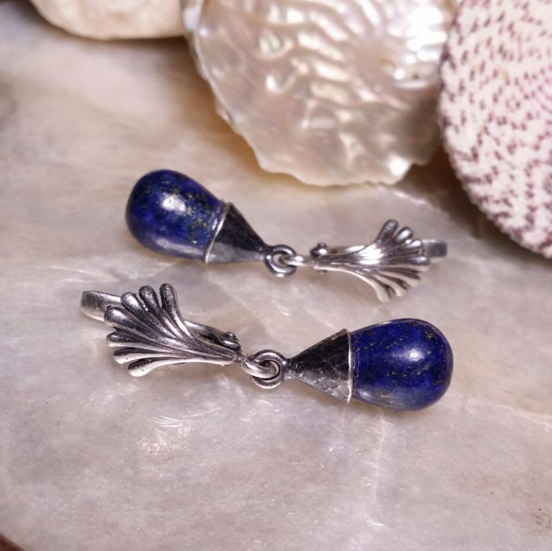 лазурит с пиритом, серебро 925 пробы 3,2 \ 0,9 см. Вес одной серьги 2,74 - 2,78 м