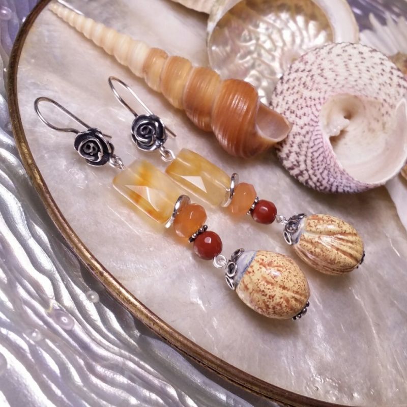 сердолик, керамика ручной работы, серебро 925 пробы 7,3\1,3 см.