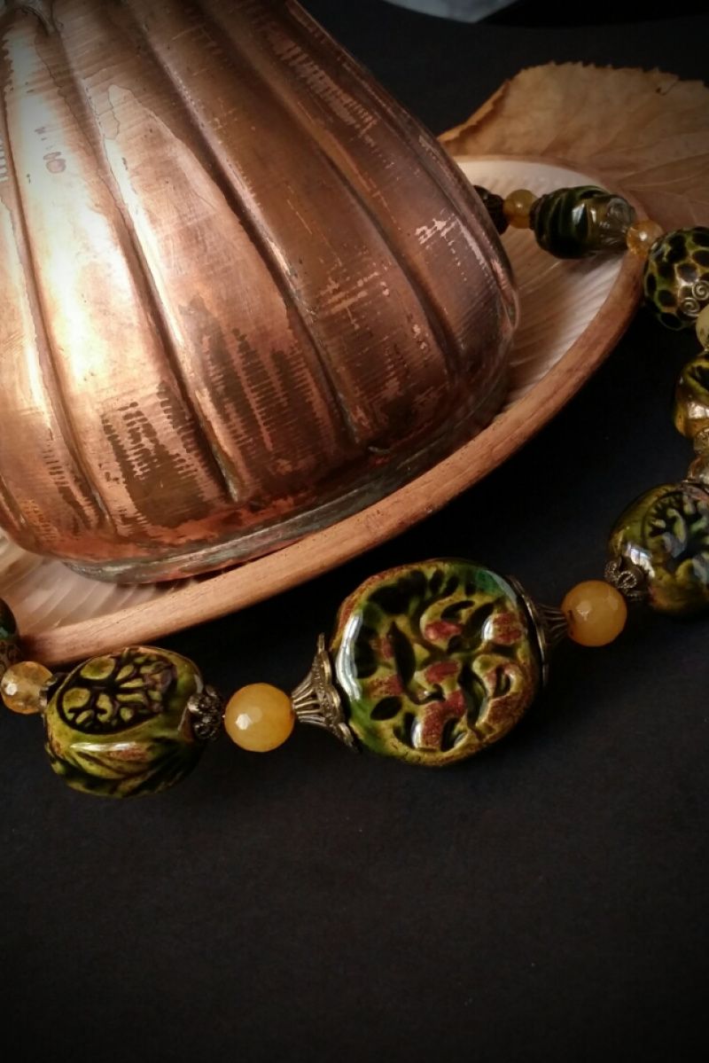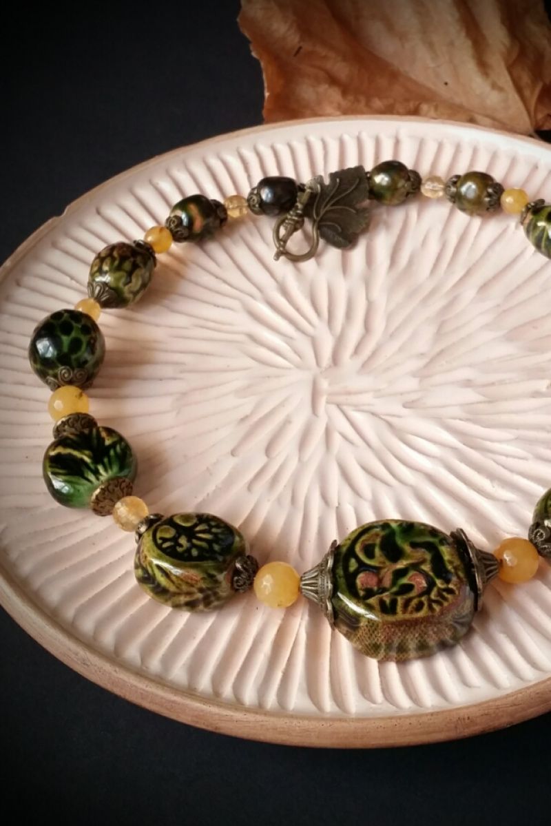керамика ручной работы, агат, цитрин, фурнитура из бижутерного сплава 47 см.