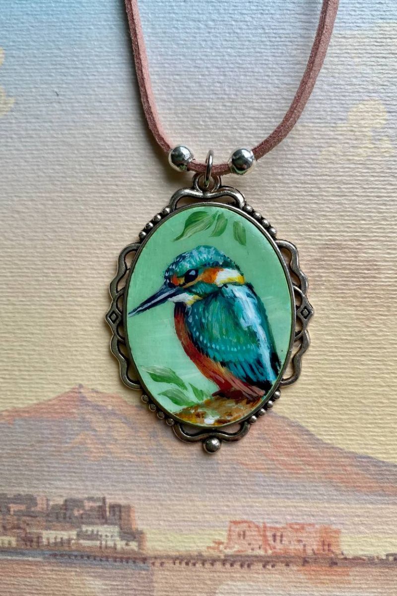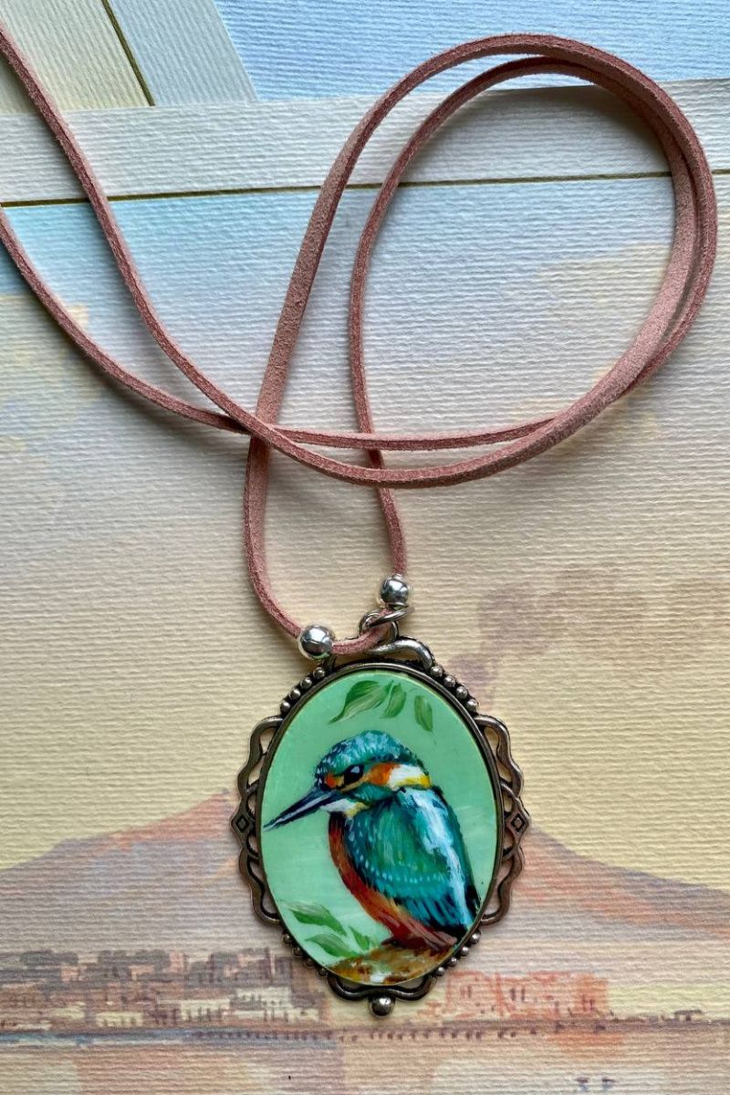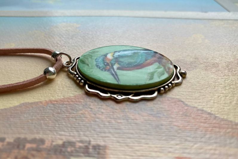 На кулоне изображена, всем нам хороше известная, речная птичка Зимородок.