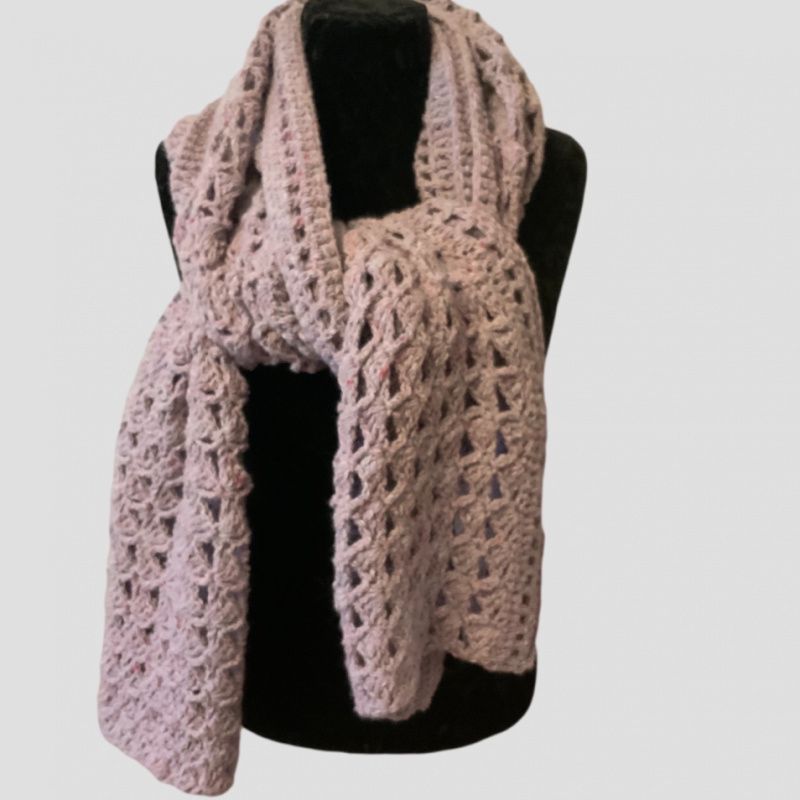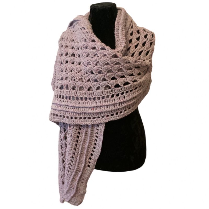 Добавьте тепла и уюта с этим большим объемным ажурным палантином из Микса шерсти и хлопка.